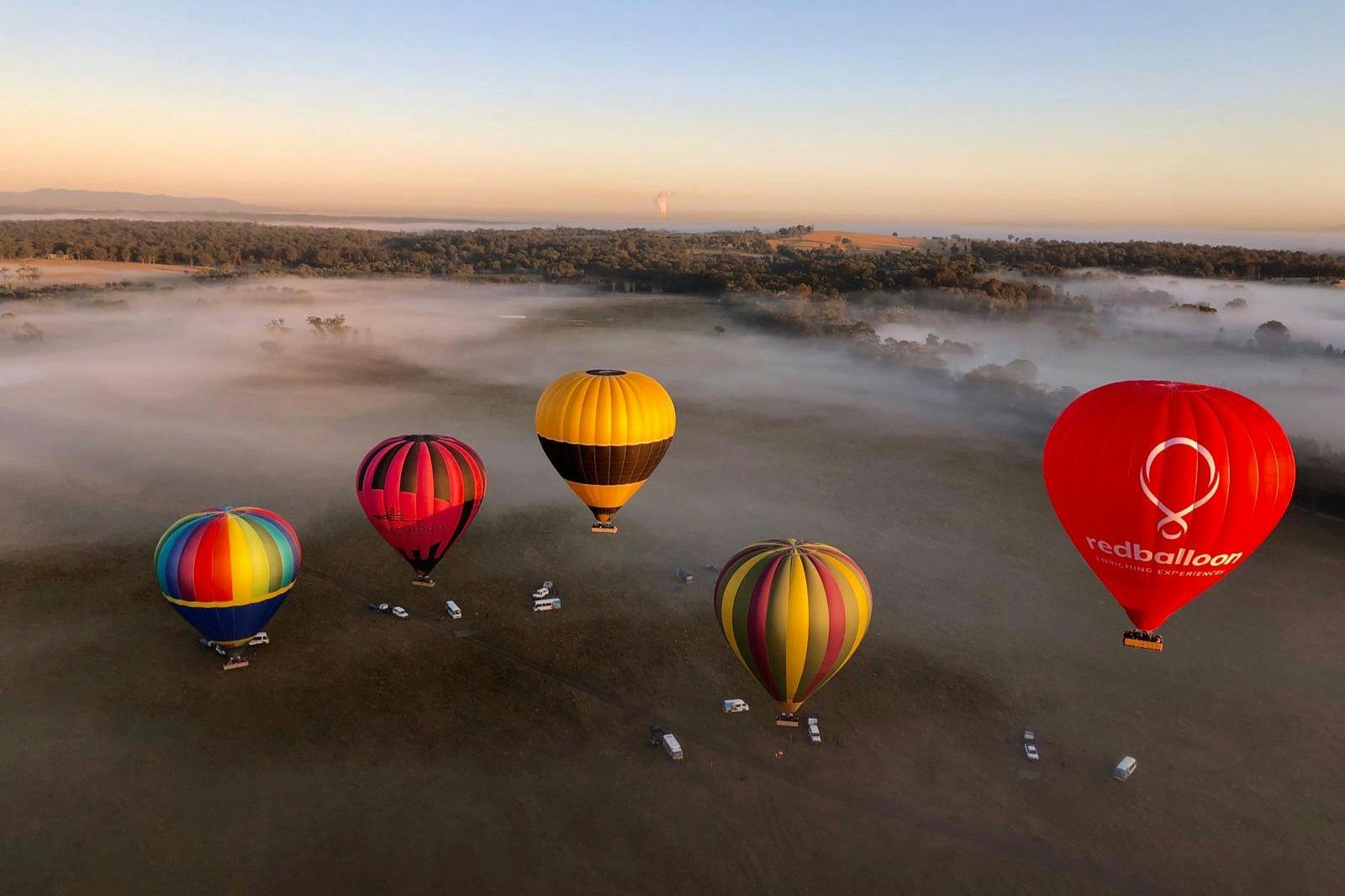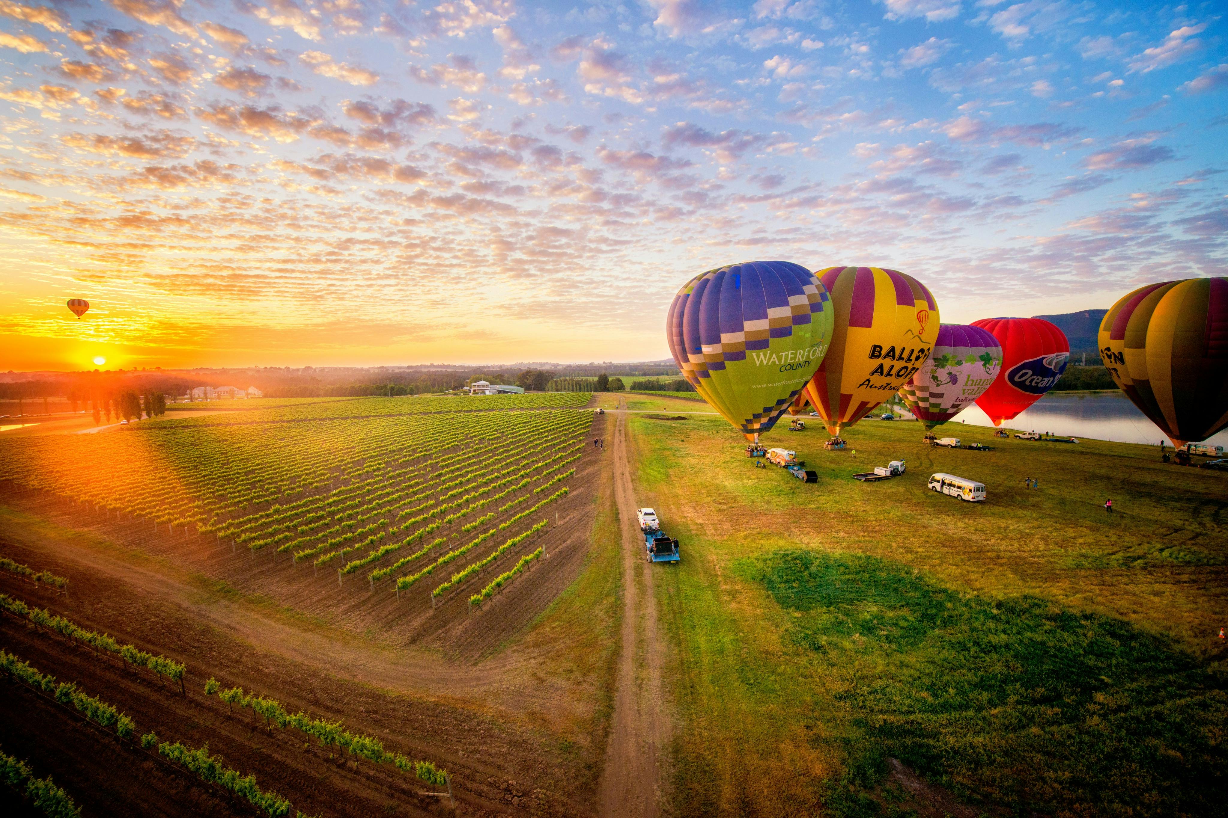 Erhöhen Sie Ihren Blickwinkel mit einer Heißluftballonfahrt über Australiens führende Weinregion im Hunter Valley. Fliegen Sie mit dem mehrfach preisgekrönten Balloon Aloft und machen Sie sich bereit für das Erlebnis Ihres Lebens, während Sie durch atmosphärische Ebenen reisen und die Welt von oben betrachten - mit dem Kopf buchstäblich in den Wolken! Ihr Flug beginnt bei Sonnenaufgang (Sie haben die Möglichkeit, beim Zusammenbau und Aufblasen des Heißluftballons mitzuhelfen), und im Laufe der einstündigen Fahrt werden Sie atemberaubende Ausblicke auf die malerischen Weinregionen von Pokolbin, Lovedale, Rothbury oder Broke genießen. Nachdem Sie über mehrere postkartenwürdige Felder, Täler und Weinberge geschwebt sind, können Sie Ihren Appetit mit einem köstlichen Gourmet-Frühstück und Champagner im berühmten Peterson House Weingut und Restaurant stillen.