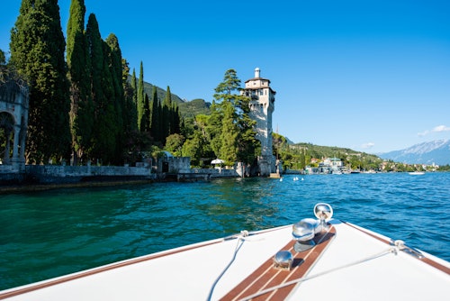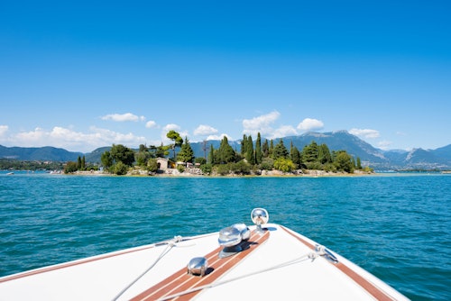 Machen Sie sich bereit für eine Kreuzfahrt über den Gardasee während dieser vierstündigen Tour, die von Sirmione aus startet. Fahren Sie über das Wasser zur Westküste des Sees und passieren Sie dabei die Rocca di Manerba und die Isola dei Conigli. Außerdem sehen Sie die beeindruckende Villa Borghese auf der Isola del Garda. Die Tour beinhaltet einen Halt in Salò, wo Sie Zeit zur freien Verfügung haben, um die Stadt zu besichtigen. Vor der Rückfahrt nach Sirmione wird an Bord ein Aperitif serviert, und wenn Sie sich im See abkühlen möchten, haben Sie auch Zeit für ein erfrischendes Bad.