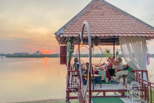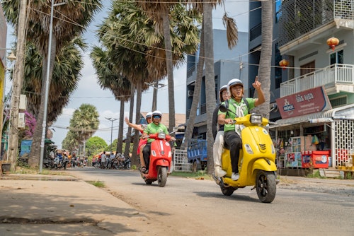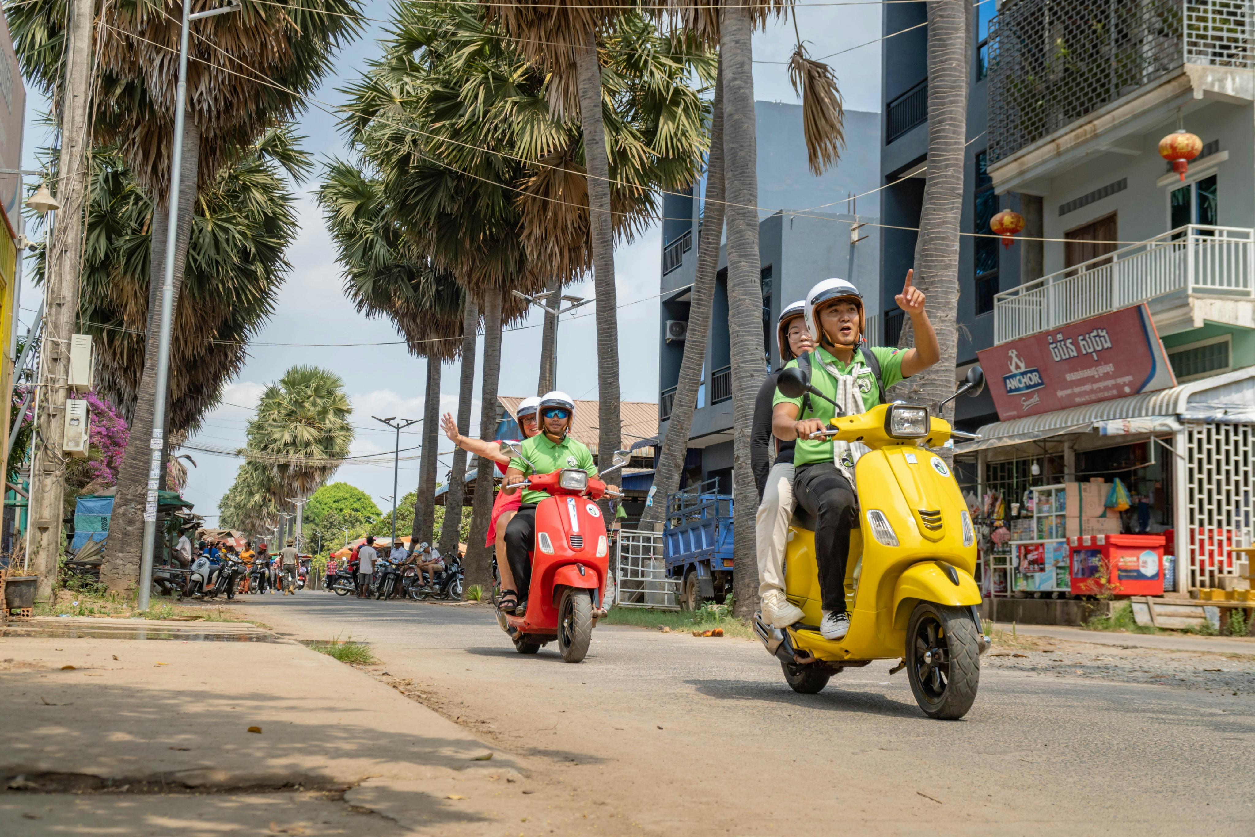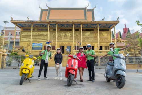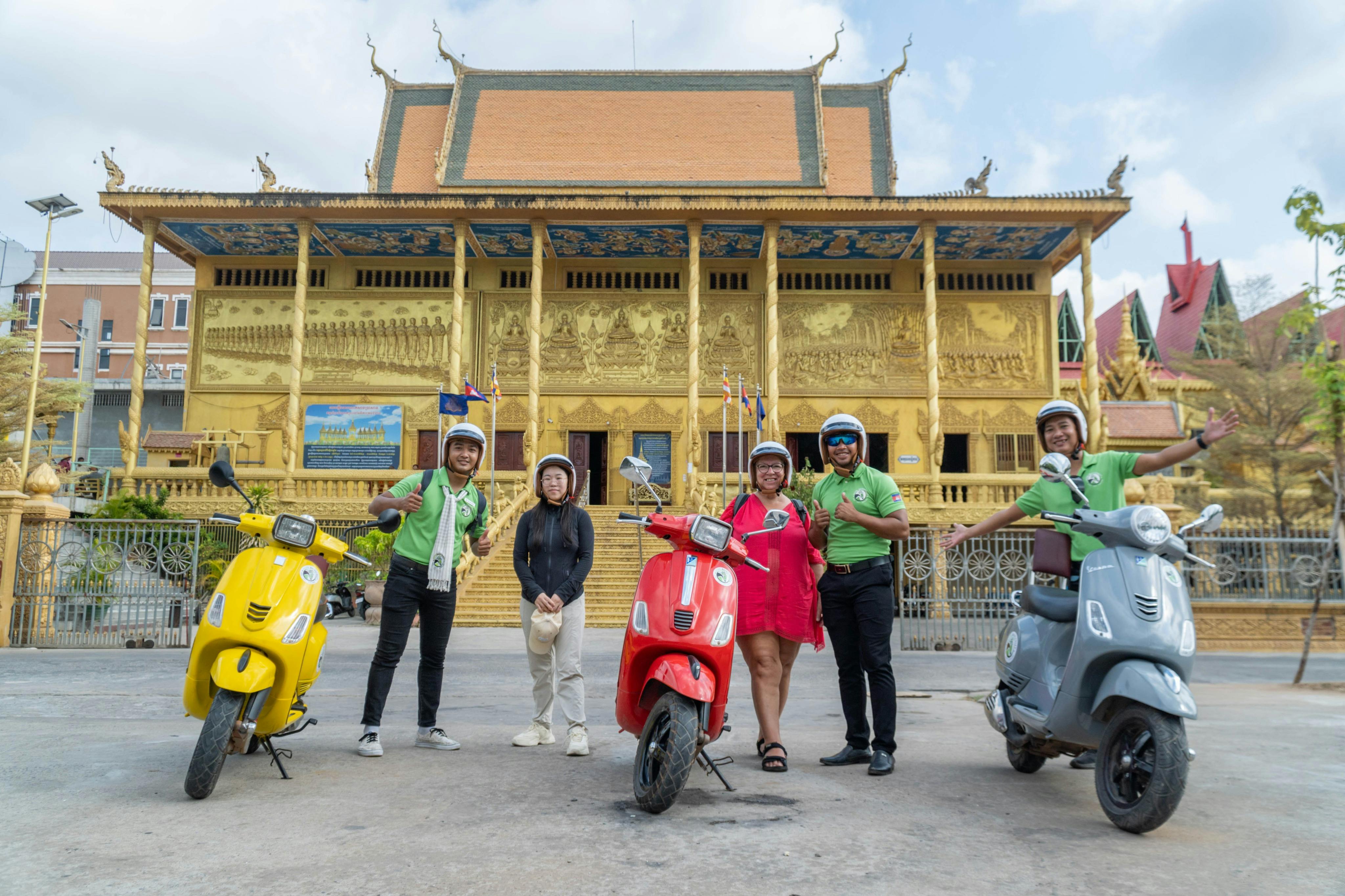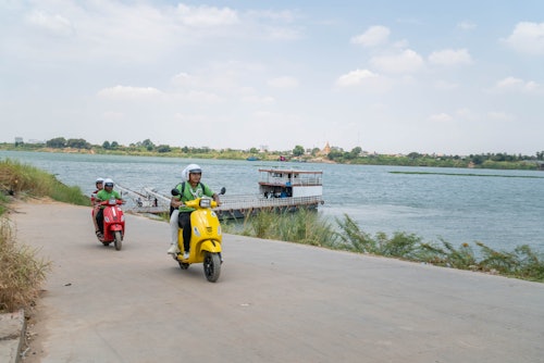 Das Abenteuer beginnt um 3:00 Uhr mit einer kurzen Einweisung. Lassen Sie den Trubel von Phnom Penh hinter sich und begeben Sie sich zur Fähre für eine Fahrt zur Seideninsel. Genießen Sie eine Vespa-Fahrt durch die Landschaft und die Bauerndörfer, bei der Sie einen Einblick in die lokale Kultur und Landschaft erhalten. Besuchen Sie einheimische Dorfbewohner, die Ihnen die Geschichte der kambodschanischen Seidenweberei zeigen, eine Tradition, die über Generationen hinweg weitergegeben wird. Beenden Sie den Tag an einem Platz am Flussufer mit einem herrlichen Blick auf den Sonnenuntergang über Phnom Penh bei einem köstlichen Essen.