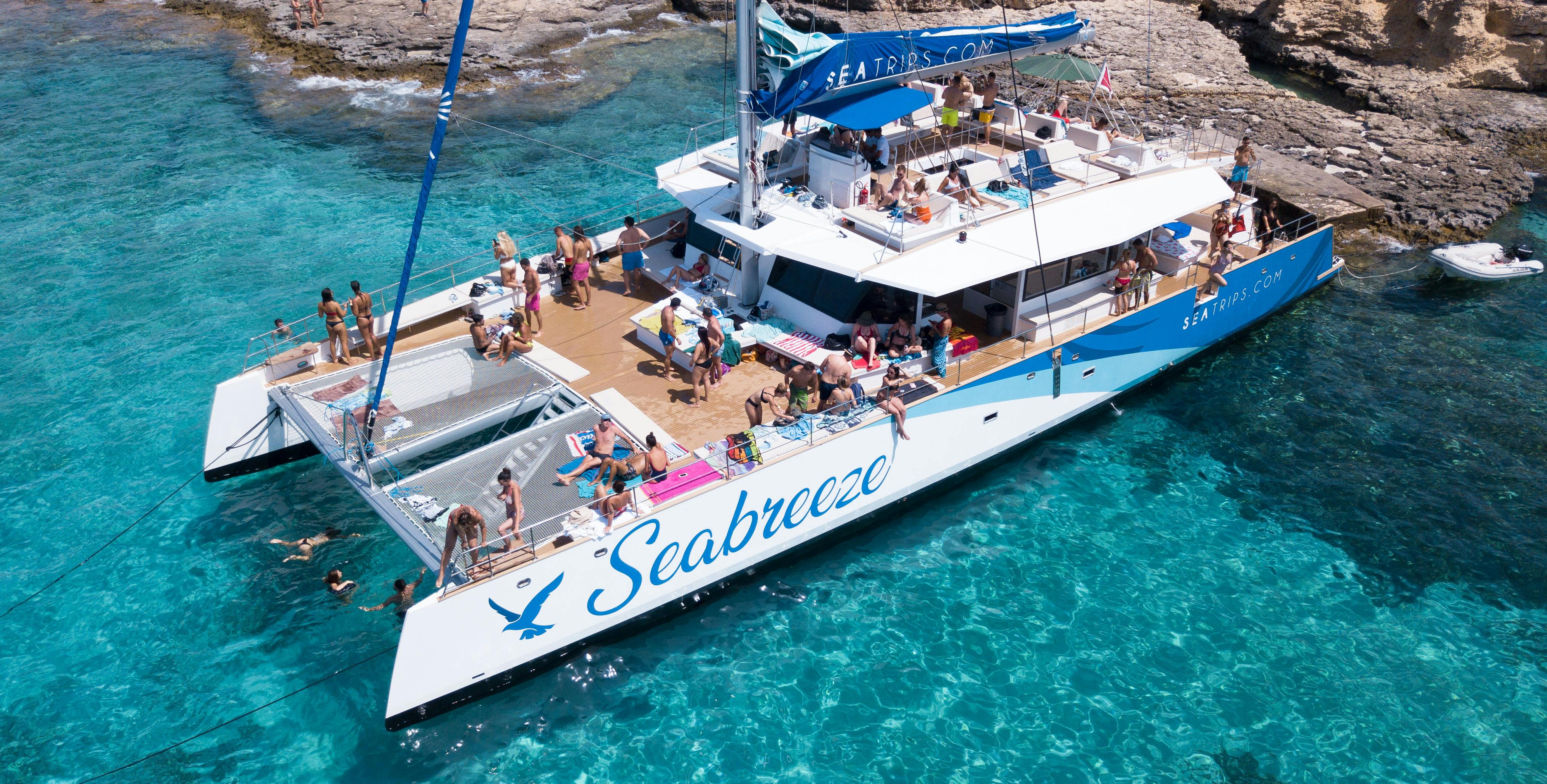 Steigen Sie in Europas größten Passagierkatamaran und stechen Sie in See! Entspannen Sie und genießen Sie die Atmosphäre nur für Erwachsene, während dieses luxuriöse Boot Sie zu den besten Bade- und Schnorchelplätzen auf Malta bringt - Sie werden unterwegs an zwei oder drei unglaublichen Orten anhalten. Besuchen Sie die Blaue Lagune und die Kristall-Lagune rund um die Insel Comino - die Blaue Lagune ist Maltas berühmtester Badeort, während die Kristall-Lagune nur über das Meer zugänglich ist und viel tieferes Wasser bietet. Sie können auch Ghajn Tuffieha besuchen, wo Sie Zeit zum Schwimmen, Schnorcheln oder Entspannen bei einem Cocktail in der Hand haben. Auf dem Rückweg entdecken Sie das Popeye Village, einen ehemaligen Filmset in der malerischen Anchor Bay. Es gibt viele weitere Orte, wie die Strände von Mellieha oder den roten Sandstrand von Ramla il-Hamra auf Gozo. Die genauen Orte können sich je nach Bedingungen ändern, aber Sie werden garantiert einen unglaublichen Tag erleben. Haben Sie nach so viel Spaß Appetit bekommen? Verpassen Sie nicht das (optionale) traditionelle BBQ!