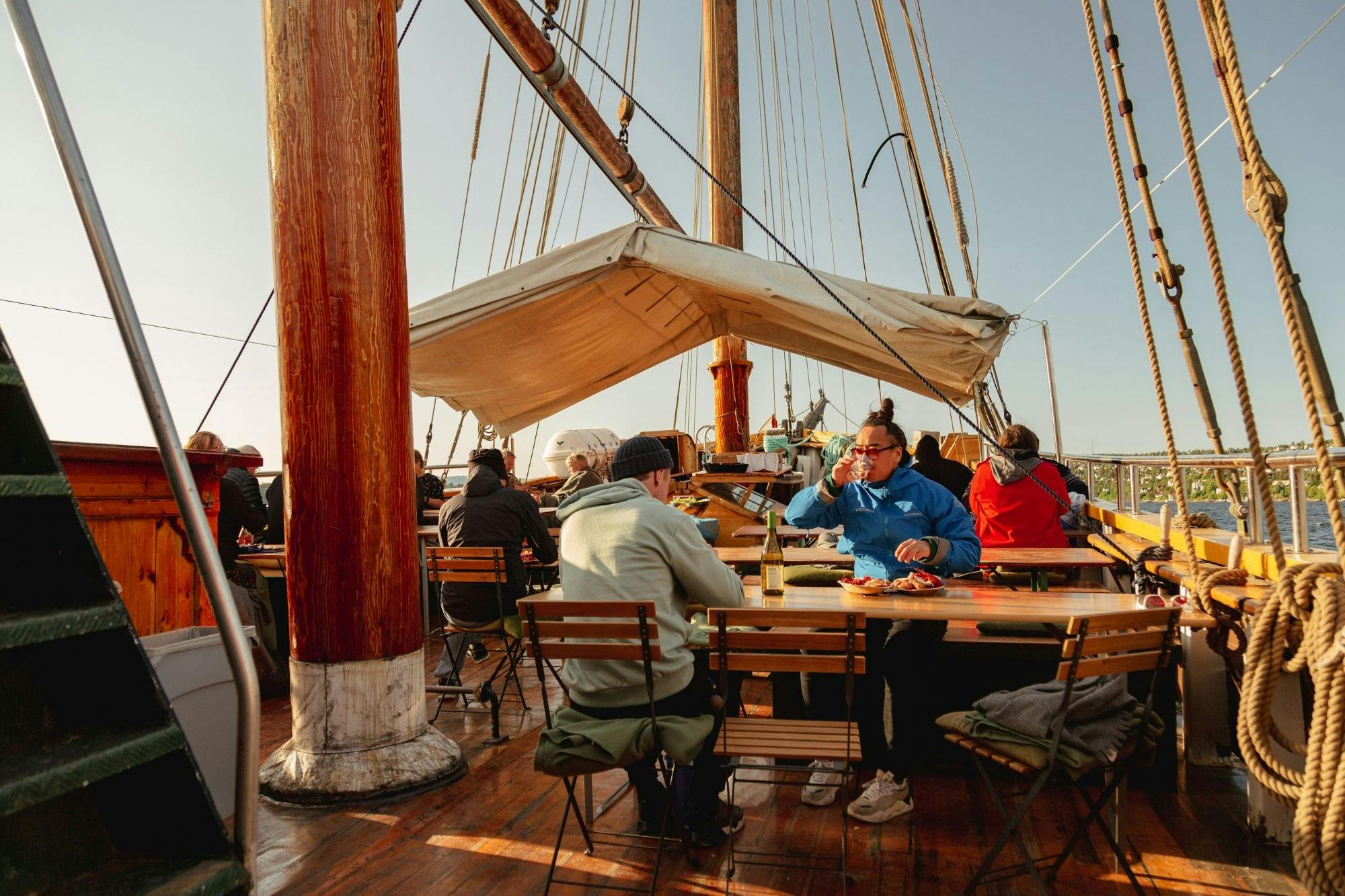 Nehmen Sie an einer Reise teil, die wunderschöne Natur mit köstlichem Essen verbindet. Auf dieser Bootstour genießen Sie eine wunderschöne Landschaft und ein großartiges Essen. Das Highlight ist das Meeresfrüchte-Buffet, perfekt für Liebhaber von Meeresfrüchten und alle, die norwegische Fjord-Köstlichkeiten probieren möchten.