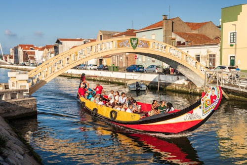 Aveiro wird nicht umsonst das "Venedig Portugals" genannt - buchen Sie Tickets für eine Gondelfahrt durch die Kanäle dieser verführerischen portugiesischen Stadt und finden Sie heraus, warum! Ihr Tagesausflug nach Aveiro, das nicht weit von Porto entfernt liegt, beginnt mit einer geführten Tour durch das Stadtzentrum, in dem das Jugendstildesign zur Schau gestellt wird. Nach der Stadtbesichtigung werden Sie zur Hauptfigur in einem Fado-Lied und lassen sich auf einer Moliceiro-Bootsfahrt durch die charmanten Kanäle von Aveiro treiben. In Begleitung eines einheimischen Kapitäns erfahren Sie mehr über die maritime Geschichte des Fischerdorfs und den ursprünglichen Verwendungszweck des Moliceiro-Boots: das Sammeln von Seetang zur Gewinnung von Flor de Sal. Nach der Bootstour können Sie in den Boutiquen der Stadt ein Glas "flor de sal" als schmackhaftes Souvenir kaufen.