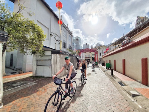 Sie möchten Singapur wie ein Einheimischer erleben? Bei dieser unterhaltsamen, 4-stündigen Fahrradtour lernen Sie die verborgenen Ecken der Stadt und ihre Highlights kennen! * Sehen Sie in Chinatown, wie sich Moscheen friedlich neben indischen und chinesischen Tempeln einreihen, erfahren Sie mehr über den harmonischen Kulturmix der Stadt und probieren Sie sogar lokale Snacks! * Von den Boat, Clarke & Robertson Quays über das Rathaus bis zum Raffles Place: diese Fahrradtour ist ein Muss!