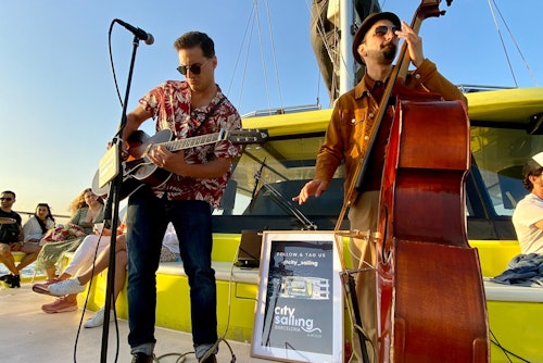 Sind Sie schon einmal an Bord eines ökologischen Katamarans gegangen, der mit Solarzellen betrieben wird? Nun, jetzt haben Sie die Gelegenheit! Genießen Sie die herrliche Aussicht auf das schöne Barcelona vom Meer aus, während Sie ein Getränk auf dieser fabelhaften solarbetriebenen Yacht genießen. Der Katamaran legt in Port Vell ab, von wo aus Sie einen Blick auf Monumente wie das World Trade Center und die größten Yachten der Stadt werfen können. Genießen Sie an Bord den Bar-Service mit BIO/organischen Optionen. Jeder Kauf von Speisen und Getränken trägt zur Erhaltung der Meeresumwelt bei. Wenn Sie mehr über die Sehenswürdigkeiten wissen möchten, die Sie vom Meer aus sehen, kaufen Sie den begleitenden Audioguide an Bord und entdecken Sie die Geheimnisse der Sagrada Familia, des Montjuic, der Ramblas del Mar, des Port Olympic und mehr.