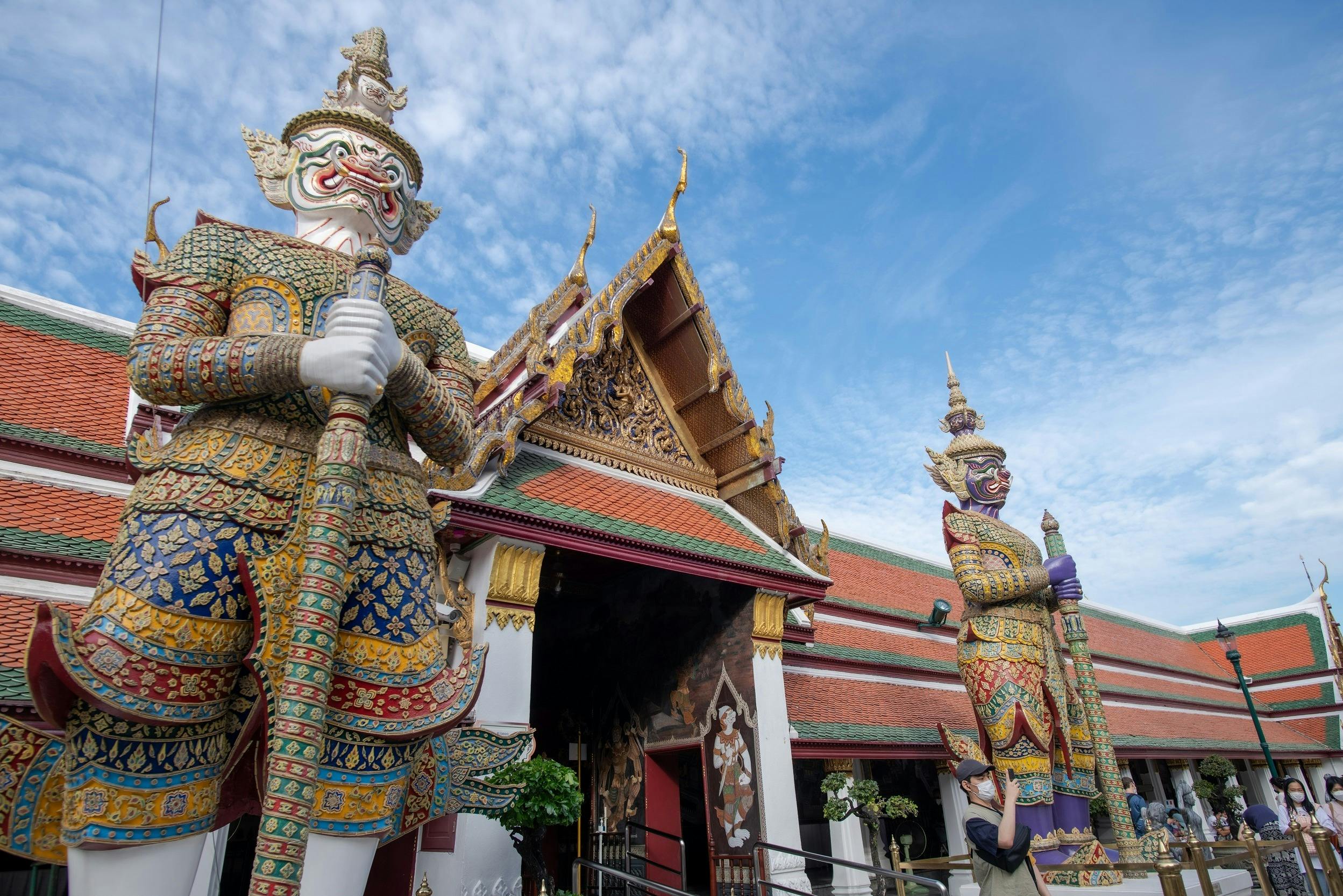 Machen Sie einen kurzen Rundgang durch Bangkok, bei dem Sie in nur zwei Stunden einige der berühmtesten Wahrzeichen der Stadt kennenlernen. Besichtigen Sie den Großen Palast von Bangkok und den Tempel Wat Phra Kaew auf einer Tour mit mehreren Startzeiten, aus denen Sie wählen können. Beginnen Sie Ihr Abenteuer mit einer Fahrt zum Grand Palace. Die im Herzen Bangkoks gelegene Anlage gilt als eines der beeindruckendsten architektonischen Wunderwerke Thailands. Schlendern Sie durch das riesige Haus der königlichen Familie und halten Sie Ausschau nach brillanten Statuen, erstaunlichen Bildern und vielem mehr. Anschließend sollten Sie sich zum Wat Phra Kaew begeben, der sich im Komplex des Großen Palastes befindet und gemeinhin als Tempel des Smaragdbuddhas bezeichnet wird. Dieser Tempel beherbergt eine der heiligsten und am meisten verehrten Statuen des Landes. Besichtigen Sie die berühmte Statue, die aus einem einzigen Stück Jade gefertigt wurde, und erkunden Sie das Tempelgelände.
