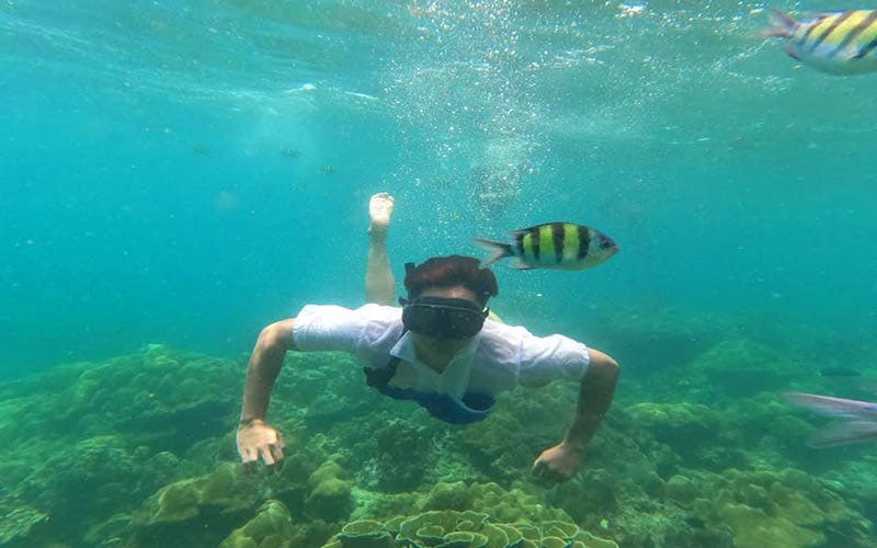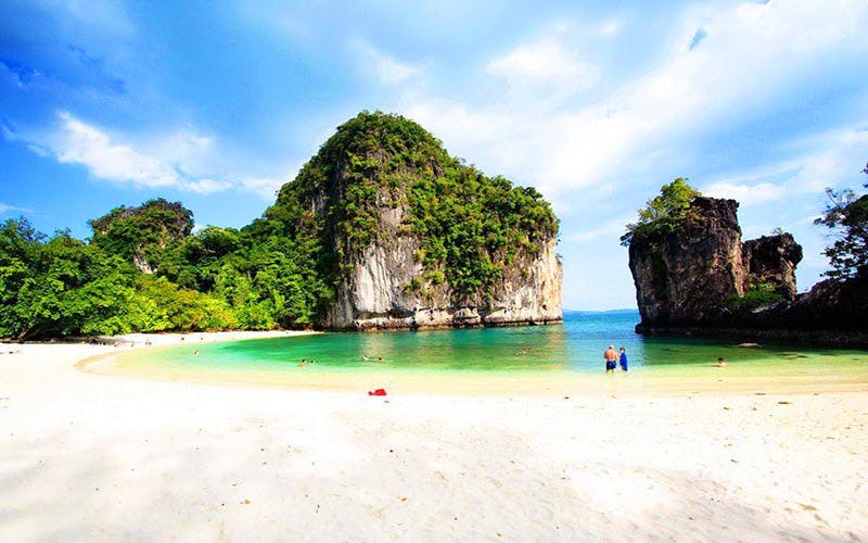 Auf der Suche nach einem abgelegenen Stranderlebnis? Hong Island bietet einen der schönsten Strände Thailands, saftig grüne Berge und eine smaragdgrüne Lagune. Diese Hong Island Tour führt Sie von Krabi zur Koh Hong Lagoon auf einem traditionellen Longtail-Boot. Nehmen Sie ein Sonnenbad am weißen Sand oder erkunden Sie das Wasser! Die Lagune ist reich an Korallen, was sie zu einem Paradies zum Schnorcheln macht. Möchten Sie das Wasser erleben, ohne nass zu werden? Entscheiden Sie sich für ein Stand-Up-Paddle-Board! Machen Sie Fotos vom berühmten Aussichtspunkt Koh Hong aus - es sind nur 419 Stufen bis zum weitläufigen Sonnenuntergangspanorama! Sie werden auch nach Lading Island segeln, um mehr paradiesische Atmosphäre zu genießen, bevor Sie ein köstliches BBQ-Dinner auf der Insel Pak Bia genießen. Wenn die Dämmerung einbricht und der Mond in der richtigen Stimmung ist, lässt das bio-lumineszente Plankton den Ozean voller Sterne aussehen!