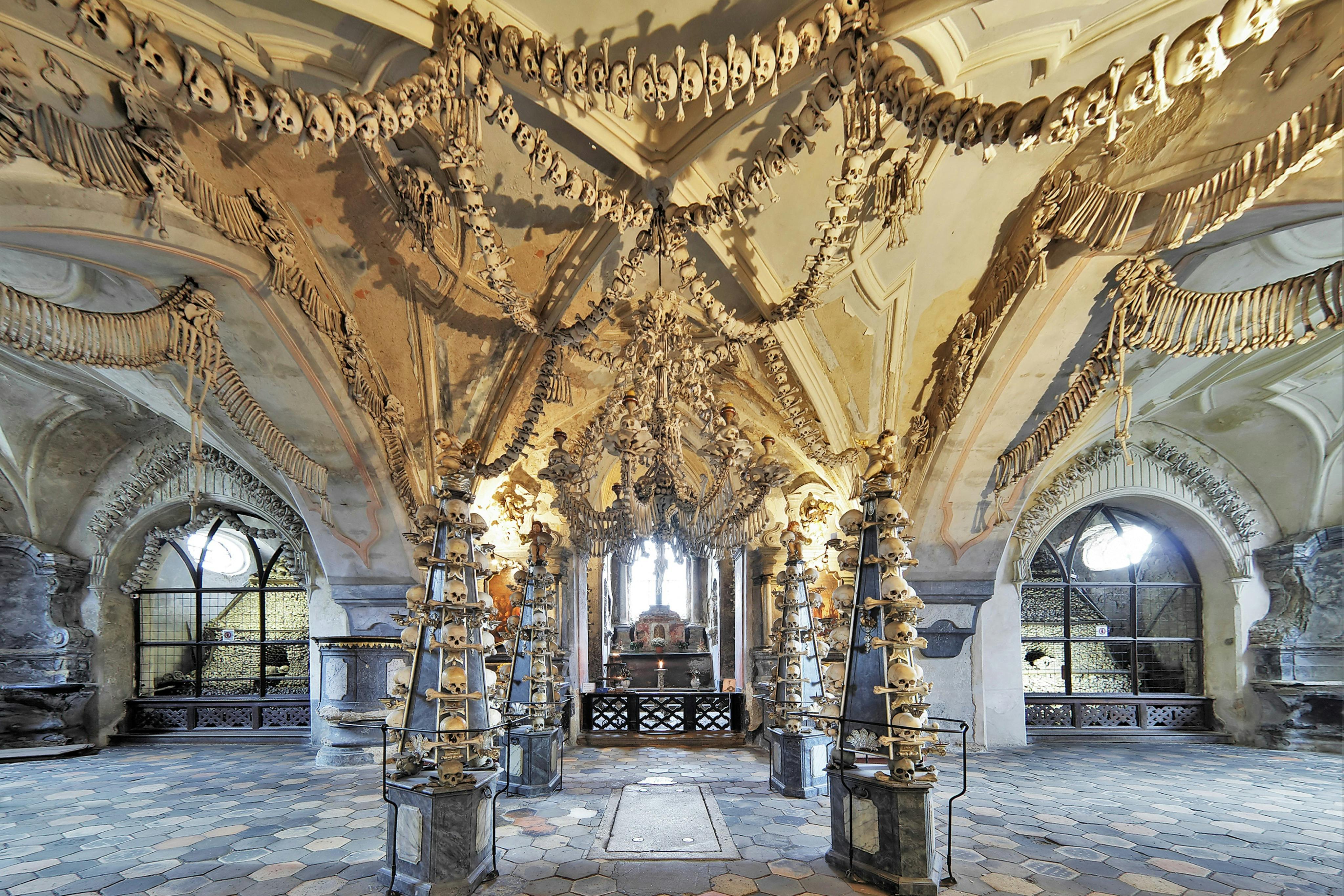 Fans von makabren Attraktionen werden diesen Tagesausflug von Prag aus lieben! Jede Einrichtung und jedes dekorative Stück, das Sie im Beinhaus von Sedlec sehen werden, wurde aus echten menschlichen Knochen hergestellt, die bis ins Jahr 1511 zurückreichen. Trotz der über 40.000 menschlichen Skelette, die in diesem Bauwerk zu finden sind, werden Sie von seiner Schönheit überwältigt sein. Es ist eine der einzigartigsten Attraktionen in Europa! Diese beeindruckende Stätte liegt in der historischen Stadt Kutná Hora, die zum UNESCO-Kulturerbe gehört. Erkunden Sie mit Ihrem Fremdenführer die von böhmischer Landschaft umgebene Stadt und betreten Sie ein wahres Kleinod. Die St.-Barbara-Kirche ist bekannt als eine der prächtigsten gotischen Kirchen Mitteleuropas. Ihre Tour endet wieder im Zentrum von Prag, wo Sie vielleicht noch an die knöcherne unterirdische Ausstattung des Beinhauses denken.