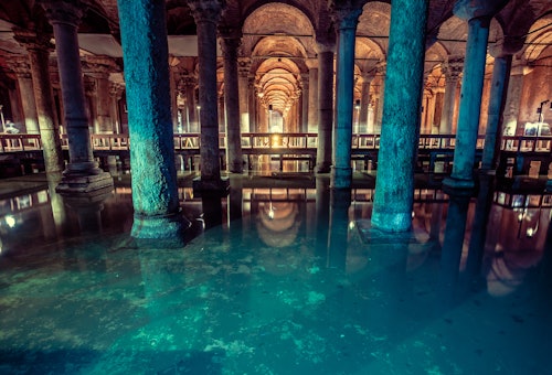 Jahrhunderte an Geschichte und Filmstars aus Hollywood - die Cisterna Basilica hat schon einiges erlebt. Kommen Sie vorbei und erkunden Sie den unterirdischen Wasserspeicher, der immer wieder als Filmkulisse dient und die größte und stimmungsvollste von mehreren hundert alten Zisternen darstellt, die unter der Stadt Istanbul versteckt liegen.