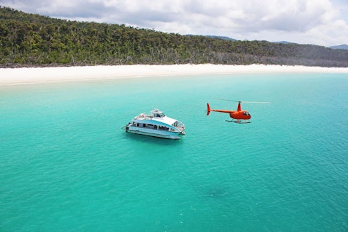 Step aboard a private helicopter and fly across the Great Barrier Reef and the Whitsundays in luxury. * After you’ve taken off, zip over the Conway National Park, rivers, and swirls of turquoise and deep blue water beside white sand bars. Enjoy an unparalleled bird’s-eye view of the breathtaking Hill Inlet and soon after, hover above the the Great Barrier Reef where you will see the iconic Heart Reef. * On your journey back, you'll enjoy great views of Airlie Beach and its surroundings.