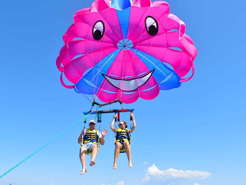 Get ready for a 1.5-hour South Stradbroke Island adventure as you glide your way along the beautiful sub-tropical shores of South Stradbroke Island with this jet ski safari and parasail ticket. * Start with a practice ride on the one-kilometer track to get your confidence up to speed, then use your new skills to blast your way full throttle around the island. Heading north, you'll ride past beautiful beaches, sandbars and islands, looking out for native wildlife as you go! During your ride, stop at a beautiful tropical bar on South Stradbroke Island for refreshments before turning back to ride the 20 kilometers home. * Your combo ticket also lets you soar through the sky like a bird and take in the magnificent views of the coastline and hinterland from up to 300 feet above the Broadwater with 10-15 minutes of parasailing during an hour-long scenic boat ride. * Planning to go on a weekend? Join the breakfast safari and get a free extended stop-over on the island!