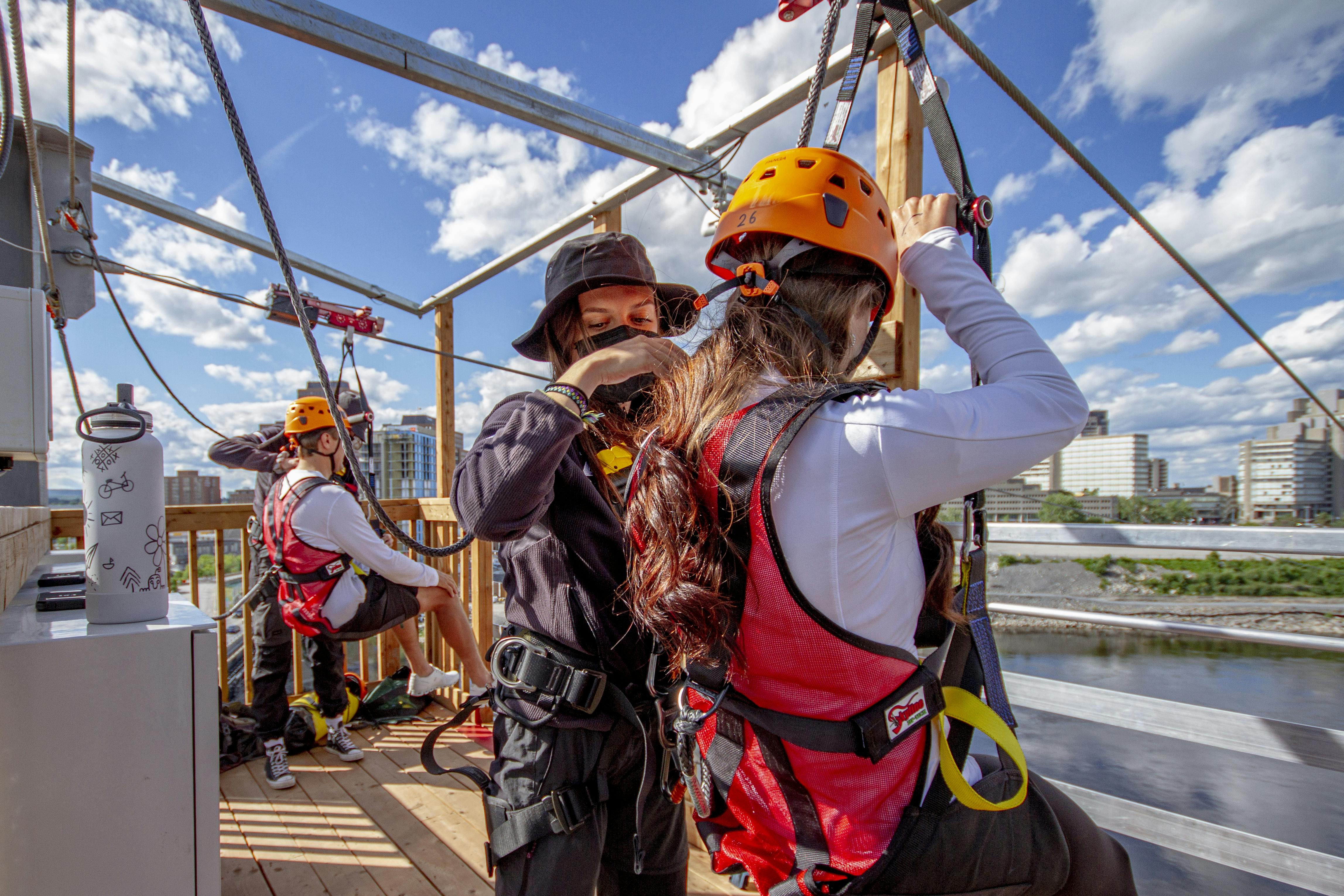 Want to know what it's like to have wings? Experience the next best thing as you fly over the border between Ontario and Quebec with InterZip Rogers Zipline tickets. You'll see the National Capital Region like never before and enjoy the best of both cities - sky-high. * This is the first and only zipline in the world that connects two provinces. The Interzip Rogers will take you on a panoramic journey 120 feet over the Ottawa River, reaching speeds of up to 40 km/h. Soar along one of two parallel ziplines that run 425 metres and make sure you look down - that is the whole point! * You'll have about 40 seconds to enjoy the spectacular views of Parliament Hill to the right, the Zibi development and Chaudière Falls to the left, and Downtown Gatineau straight ahead.