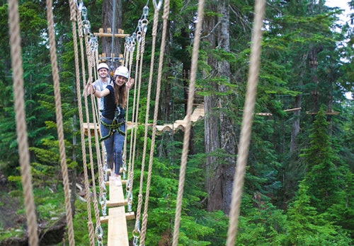 Heed the call of your inner Tarzan, and scramble through the treetops of Grouse Mountain's beautiful alpine forest like a game show contestant determined to conquer all obstacles in your way. * This Mountain Ropes Adventure will put your balance, agility, and ability to tolerate heights to the test, as you traverse dizzying walkways, and climb trees and platforms – all suspended at exhilarating altitudes above the forest floor.