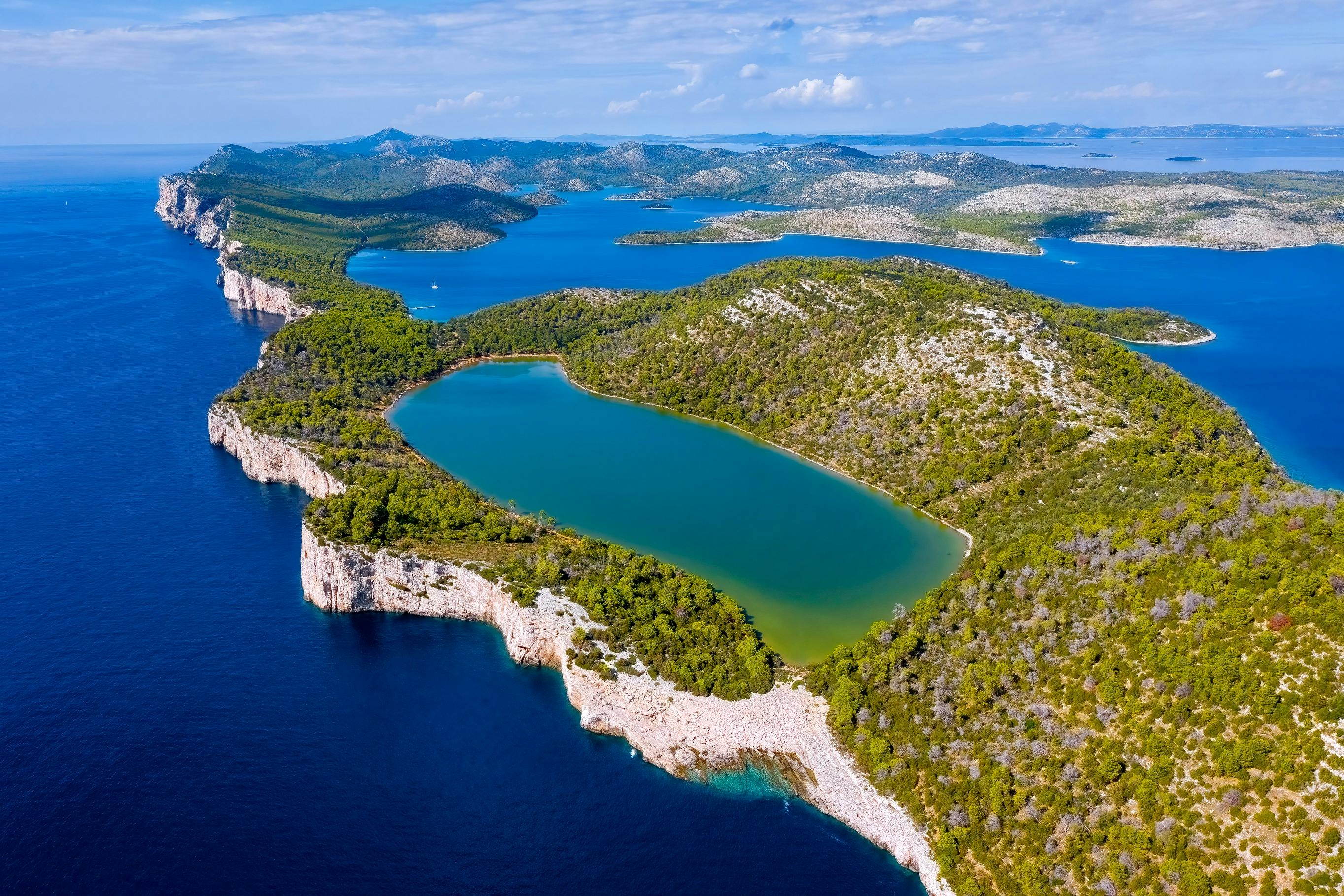 Step aboard in Zadar or Bibinje, bid farewell to any lingering stress, and bask in the soothing sunlight and gentle sea breeze. A welcoming breakfast, aperitif, and engaging introduction from the guide kick-start the adventure. * Next, the journey leads to the enchanting Telašćica Nature Park, an oasis flush with vibrant flora and fauna. Here, serene beaches embrace towering cliffs, creating a picturesque blend of tranquility and drama. As the largest bay in the Adriatic beckons, seize the opportunity to swim in the salty lake, conquer the cliffs, and soak up the sunshine! * As the boat conquers the calm seas, a lunch break presents a unique dining experience. Savour mouthwatering Dalmatian dishes, including grilled fish and chicken paired with a fresh salad. Even the most discerning palates will be utterly delighted, while a glass of local wine is guaranteed to captivate hearts and souls. * The journey continues onto Kornati National Park, a dazzling spectacle of 89 islands, islets, and reefs strewn like shimmering pearls. Locally dubbed "The Tears of God", these islands bewitch with their rugged stones and crystal-clear azure sea. * Finally, the voyage circles back to Bibinje and Zadar, offering one last awe-inspiring view of Telašćica and Kornati. Don't miss out on this enchanting odyssey!