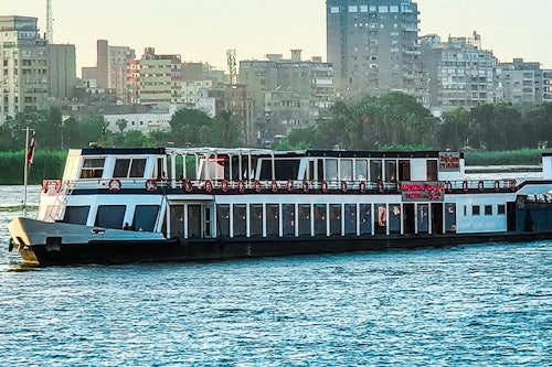 Set sail on an otherworldly journey with a sunset dinner cruise and show along the Nile. This not-to-be-missed experience melds the Nile's natural beauty, the spellbinding spectacle of a sunset, a mouthwatering dinner, and captivating entertainment into one seamless event. The adventure kicks off with a private transfer, offering a hassle-free commencement to an unforgettable evening on the legendary river. * Upon stepping onto the cruise, prepare for a visual feast as the sun takes its bow over Cairo, bathing the calm Nile waters in a warm, golden glow. Revel in opulence as the cruise serenely navigates the river, offering sweeping vistas of Cairo's skyline, adorned in the sun's retiring golden hues. * Savor a lavish dinner buffet, presenting a smorgasbord of local and international culinary masterpieces, skillfully crafted to tickle your palate. As the night sky slowly unveils its star-studded canvas, the cruise morphs into a stage for a captivating show. Get ready to be spellbound by heart-stirring traditional performances, live music, and cultural exhibitions that pay tribute to the rich tapestry of Egyptian heritage.
