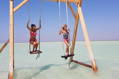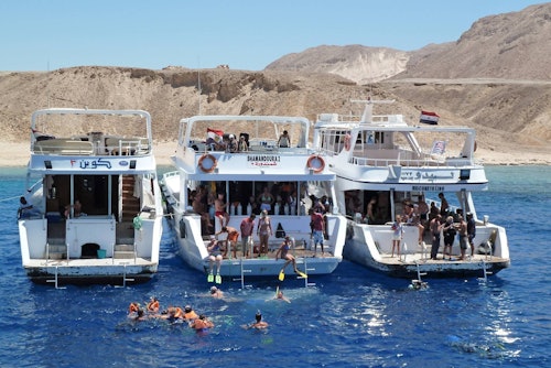 Kick-off a day of luxury and adventure with a convenient hotel pickup, whisking you away to the pier for a voyage like no other. Embark on a sumptuously outfitted boat that sets sail towards the entrancing Orange Bay Island. As the Red Sea's enchanting beauty unfolds, take a deep dive into its colorful coral reefs for a snorkeling experience that paints unforgettable memories. * Once the small boat docks at Orange Bay Island, a two-hour window opens up for pure relaxation or another round of underwater exploration. The island's pristine sandy beaches offer a serene sanctuary, while its vibrant marine life promises an adrenaline-fueled snorkeling adventure. * Wave goodbye to the island as the boat takes off for a gastronomic journey, serving a scrumptious lunch onboard. The adventure doesn't stop there - a second snorkeling trip unveils more of the mesmerizing marine life beneath the Red Sea's crystal-clear waters. * As the clock strikes 4:00 pm, the boat glides back to the pier, where a driver awaits to take you back to your hotel, wrapping up a day filled with luxury, adventure, and unforgettable experiences.