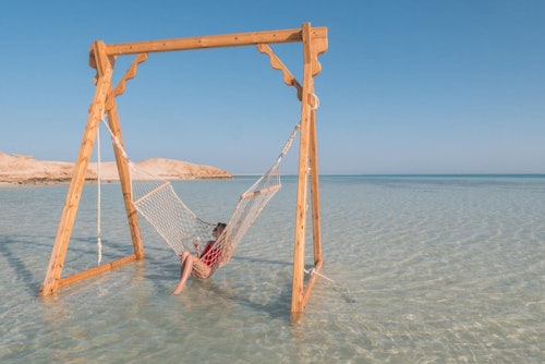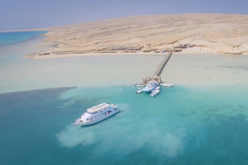 Start your day with a convenient pickup from Hurghada. Board a boat and head out on the Red Sea towards Orange Bay. Spend the day snorkeling with provided equipment. Jump off the boat when allowed to see coral reefs and sea life. Explore Orange Island and eat a lunch buffet on the boat. At the end of the day, the boat will return to shore and take you back to your Hurghada hotel.