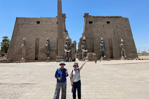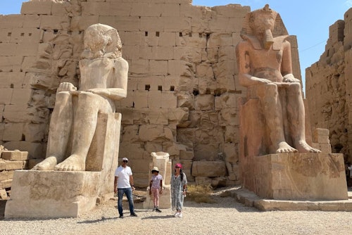 Start the day with a pickup from your hotel. A representative will pick you up in a private air-conditioned car and take you to the West Bank. * Visit the Valley of the Kings, where you can explore the tombs of ancient Egyptian kings such as Thutmose I, Thutmose III, Tutankhamun, Ramesses VI, Merneptah, and Amunhotep II. * Next, head to the temple of Queen Hatshepsut, also known as Deir el-Bahari. This temple highlights the reign of Queen Hatshepsut, the only female pharaoh of the 18th dynasty. * Then, see the Colossus of Memnon and the remains of the mortuary temple of Amenhotep III.