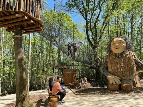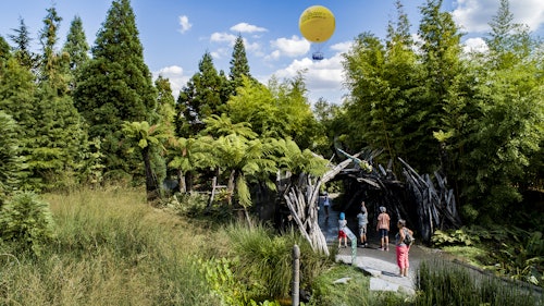Explore themed areas, from prehistoric jungle to Asian gardens, Mediterranean terraces, walkways between trees, hot air balloon rides, boat rides, butterfly greenhouse and more. Make sure you don't miss the view of the valleys of Anjou by visiting the "Les Mystères de la Forêt" area, where you can explore charming paths and treehouses, all in an enchanted forest of 1.5 km². Immerse yourself in a zen atmosphere and observe the fauna and flora that surrounds you, or enjoy an acrobatic experience in a sea of nets going from tree to tree!