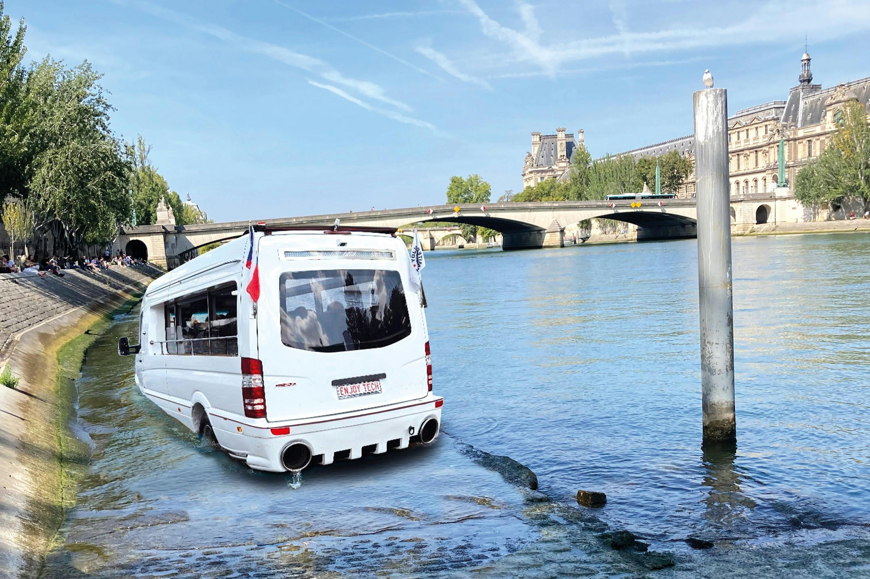 See Paris from a unique perspective as you travel to Versailles by amphibious van! * Enjoy three experiences in one on this 1.5-hour Duck Tour that sets sail from from the Pont des Arts: a hybrid minibus tour, a boat tour, and a guided tour . * As you drive through the Seine, you'll see the iconic sights of Paris, including the Louvre, the Eiffel Tower, and Pont Alexandre III. * While you float along, listen to stories about the people and places of Paris from an expert captain/guide.