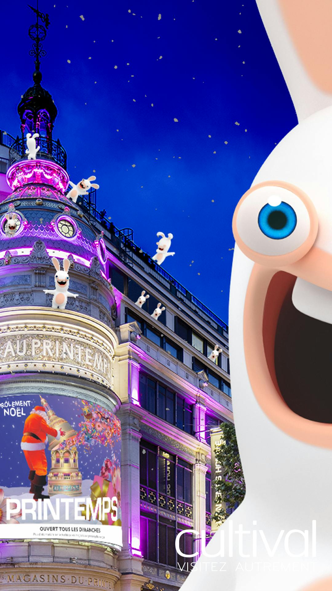 It's up to you to save Christmas at Printemps Haussmann. The Raving Rabbids have invaded the store and made it their playground. Now, the fate of Christmas is resting on your shoulders – can you find the pesky critters before they overrun the place? * Using a specially designed augmented reality app, a map, and your mind to solve clues, you'll stop the Rabbids from overrunning Paris. Once you've got them by their ears, it's time to send them home in the washing machine they came in!