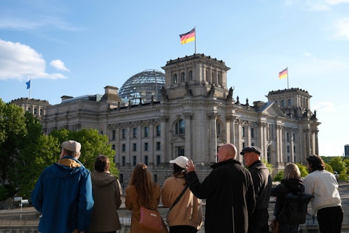 Take a German-language tour of Berlin's historic parliament district with an expert guide, on a time-traveling tour of the city's dramatic political history, and explore the engine room of German democracy from the inside. * Wander along the banks of the Spree and hear stories about the Brandenburg Gate, visit the memorial for the dead of the Berlin Wall, step inside Germany's corridors of power at the Reichstag, sit in the Bundestag, gaze over the city from the famous glass dome, and more.