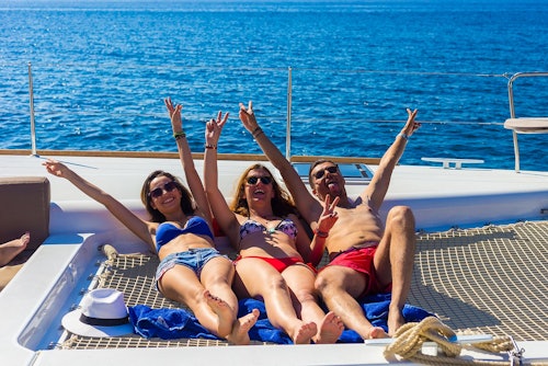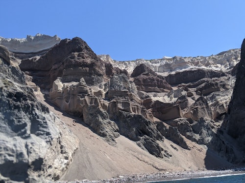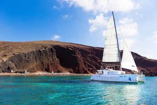 This must-do excursion is perfect for anyone wanting to see all of Santorini’s top highlights. Embark on a sailing catamaran for a five-hour cruise, after being picked up straight from your hotel. * Enjoy three scenic swimming stops, as well as meals and drinks, while the crew guides you through Santorini’s natural monuments and their history. * Snorkeling equipment, towels, and safety gear are all provided, making this a great activity for solo travelers as well as small groups and families. * As well as the outdoor seating area, you can also rest indoors, and use facilities including a changing room and a toilet.