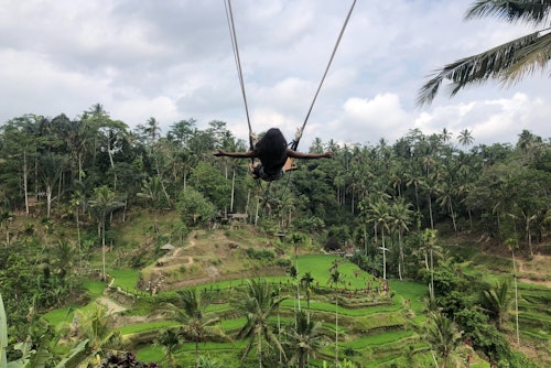 Prepare for a central Bali day tour, starting with the Barong and Keris Dance show. * Visit Kanto Lampo Waterfall for a swim and selfies, followed by lunch at a local restaurant. * Explore Ubud's Monkey Forest, then experience the Kumulilir Bali Swing over the rainforest. * End the day at Tanah Lot Temple, watching the beautiful sunset over the ocean.
