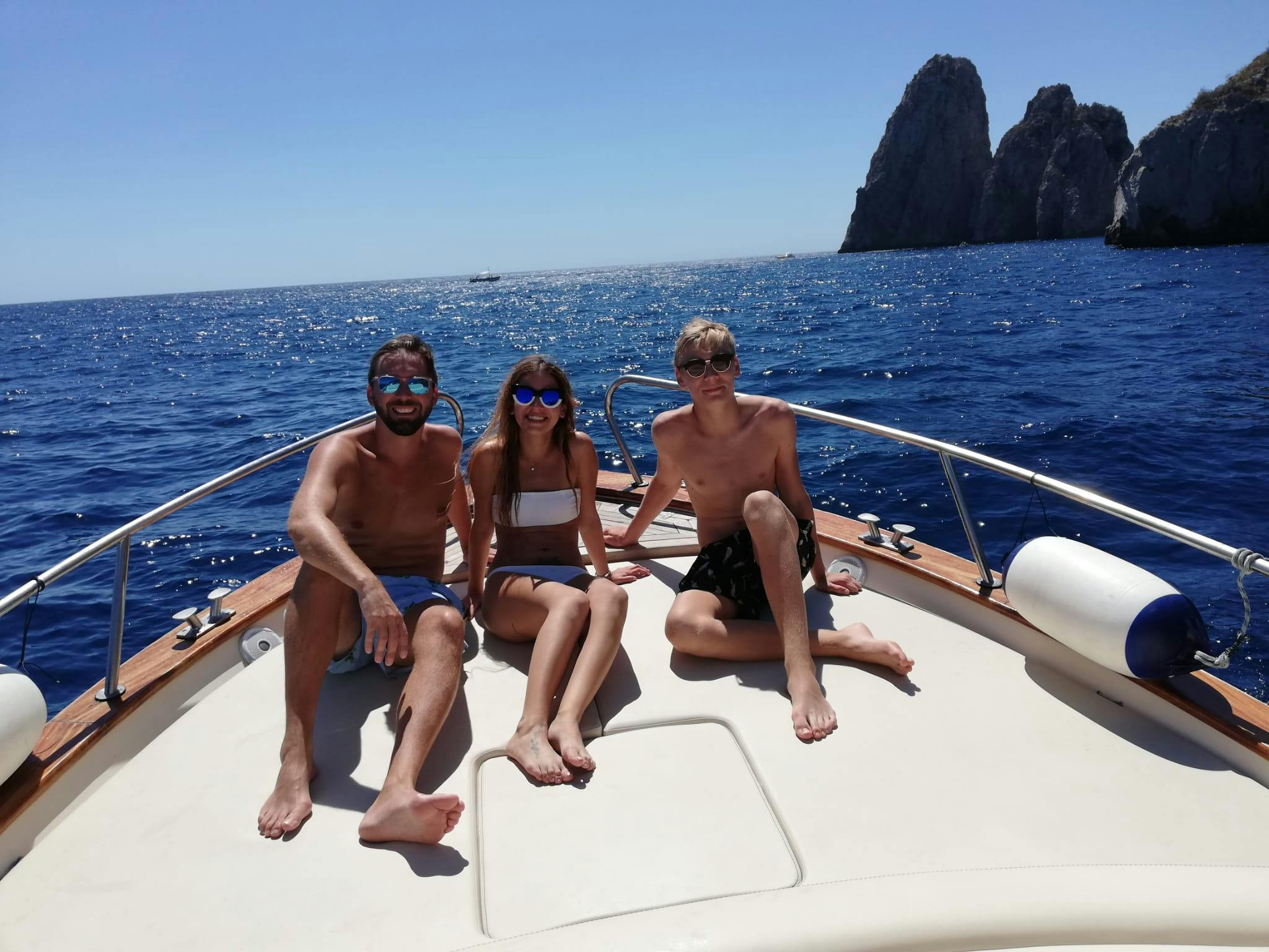 Modern Sorrentino gozzo with half-cabin and bathroom, sunbathing area and awning, shower and stereo system