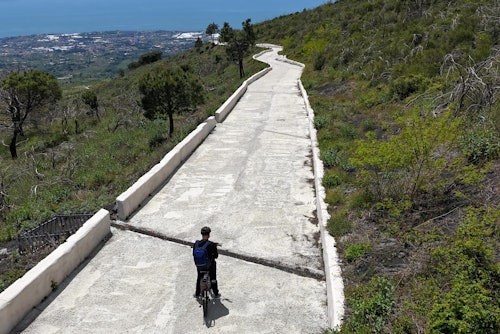 Take an exciting tour up Mount Vesuvius! Starting from the scenic Vesuvio Drive, the trip leads through Strada Matrone and Via Cifelli. After a quick 15-minute ride, you'll reach the entrance of Vesuvius National Park, beginning an exciting adventure. * Leave the e-bikes at an altitude of 800 meters and go on a scenic hike along a nature trail. Witness beautiful views as you approach the volcano. * After a 40-minute walk, the approach to the crater turnstiles begins. Spend an hour exploring the crater, admiring this one of the world's most extraordinary natural phenomena up close. * The adventure continues with a descent back to Vesuvio Drive, where you can relax and feel the satisfaction of conquering the summit.