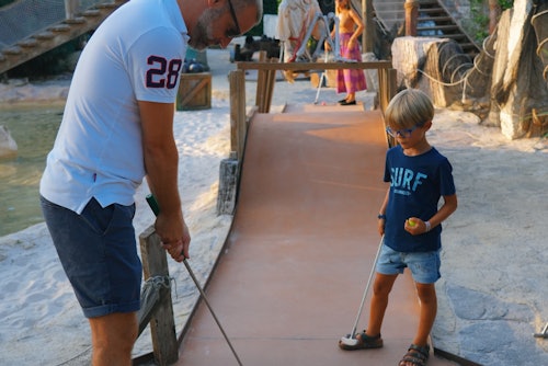 Ahoy there, golf lovers! Discover the thrilling 24-hole mini golf course at Caribe Bay! Prepare for an adventure like no other as you immerse yourself in a tropical paradise, where swaying palm trees and gentle breezes set the scene. The course unfolds before you in a delightful array of whimsical challenges. * Embark on your journey through cascading waterfalls and lush foliage, all while avoiding hidden obstacles. Conquer the pirate ship, navigate babbling brooks, and test your skills on towering slopes. The vivid colors of the Caribbean backdrop paint a picture of pure joy. * A final mystery awaits at the 24th hole, beckoning the brave. Prepare for a miniature odyssey filled with unforgettable moments. * Secure your tickets today and discover the enchanting world of Caribe Bay's 24-hole mini golf course. Let the games begin!