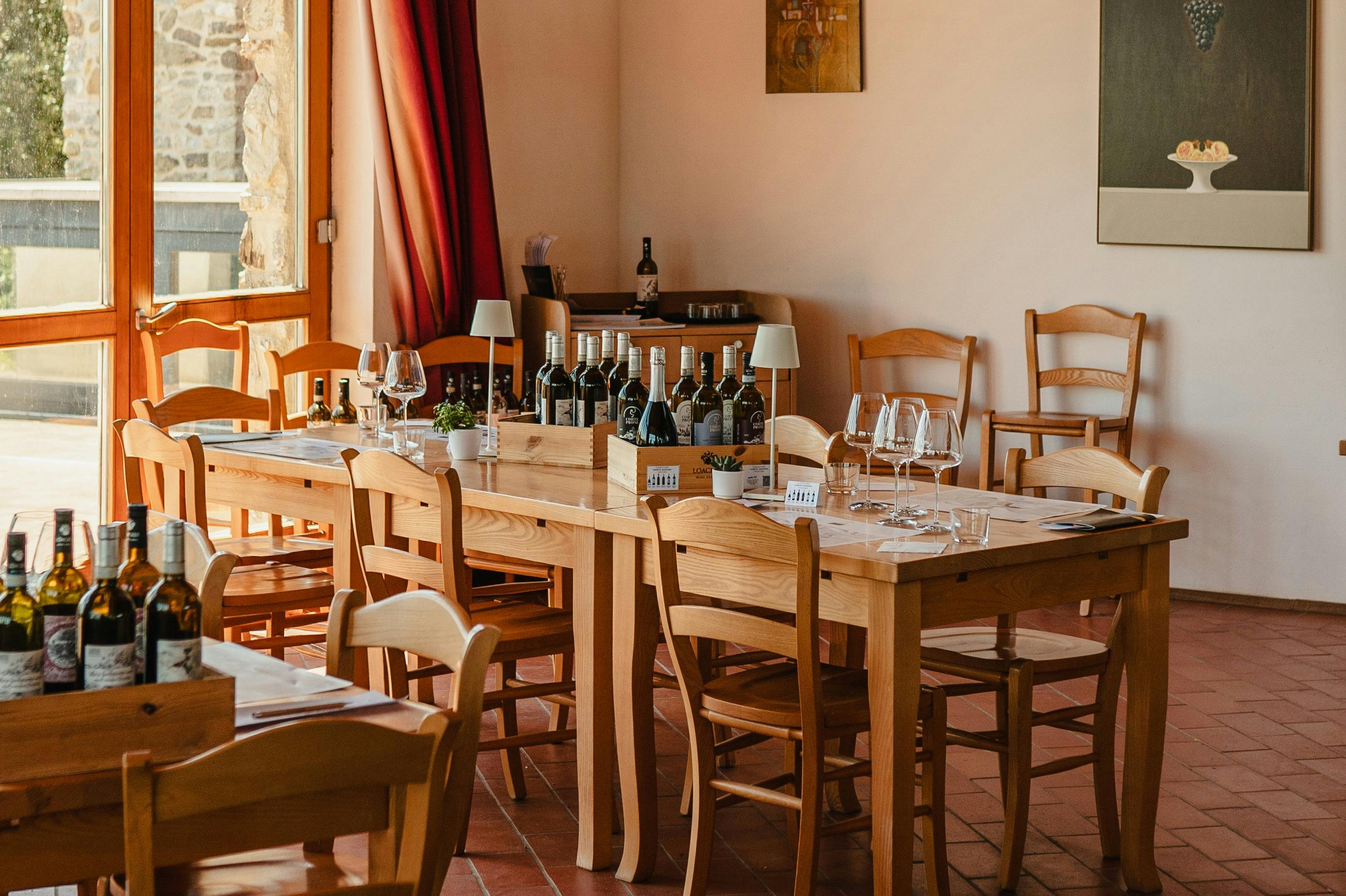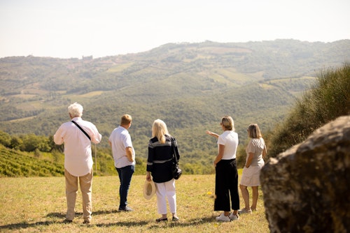 Go on a tour of the Montalcino winery, guided by a team of experts passionate about winemaking. * As the group goes down the Brunello Cru Path, stunning views of the wine town come to life, providing a backdrop for all those wine-related questions that have been *fermenting* in your mind. * The journey continues in a wine cellar to learn about the process of transforming grapes into exquisite wine. * Now, it is time for the grand event- the wine tasting! In a tasting room or on a terrace, the group will sample six wines in three flights. After a brief introduction to each flight, it's time to savor the wines at a leisurely pace.