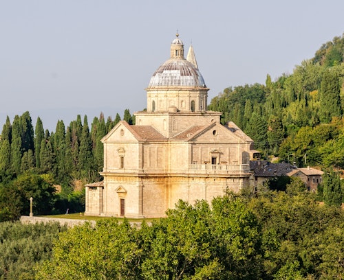 Nestled among the rolling hills of Montepulciano wine country is this spectacular Greek-Renaissance church, built in 1518 and substantially restored by Pope Leo X in the 16th century. It's famed for its 'glowing' marble brickwork, a stunning fresco of the Madonna and St Francis, and a design which was used as the basis for St. Peter's Basilica – it's the original prequel.