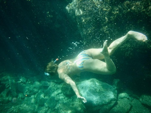 Snorkeling equipment (mask and snorkel) and lycra t-shirt