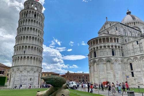 Discover the medieval town of Lucca and its fortified walls independently on a full-day trip from the cruise terminal at Livorno. * When you arrive in Lucca, take a tour of the most iconic landmarks and buildings, including the Torre Guinigi, the Anfiteatro Square, and the San Frediano Church. At the end of the tour, enjoy free time to explore on your own, grab lunch at a local cafe, (at your own expense) or shop for souvenirs at the market. * Depart Lucca for Pisa at 2:30 PM, and prepare to be wowed by the historical heart of the city roughly 30 minutes later. * Opt to add on a traditional lunch for your trip to Lucca, and if you'd prefer to explore on your own, you can choose the Low Cost Option, which only includes the transfer.