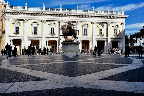 Soak up the splendor of the first square to be built following Michelangelo's criteria of a uniform design, in modern Rome. Peruse the paintings by Caravaggio and other masterpieces in the Capitoline Museum, including many ancient Roman statues, inscriptions, and other medieval and Renaissance artifacts. * This 3-hour guided tour is the perfect chance to learn about the history and the construction of Capitoline Hill. The Santa Maria in Ara Coeli, built on the ruins of the Tempio di Giunone Moneta, is the highest peak of Campidoglio (The Capitoline hill), and the views from up here are spectacular!