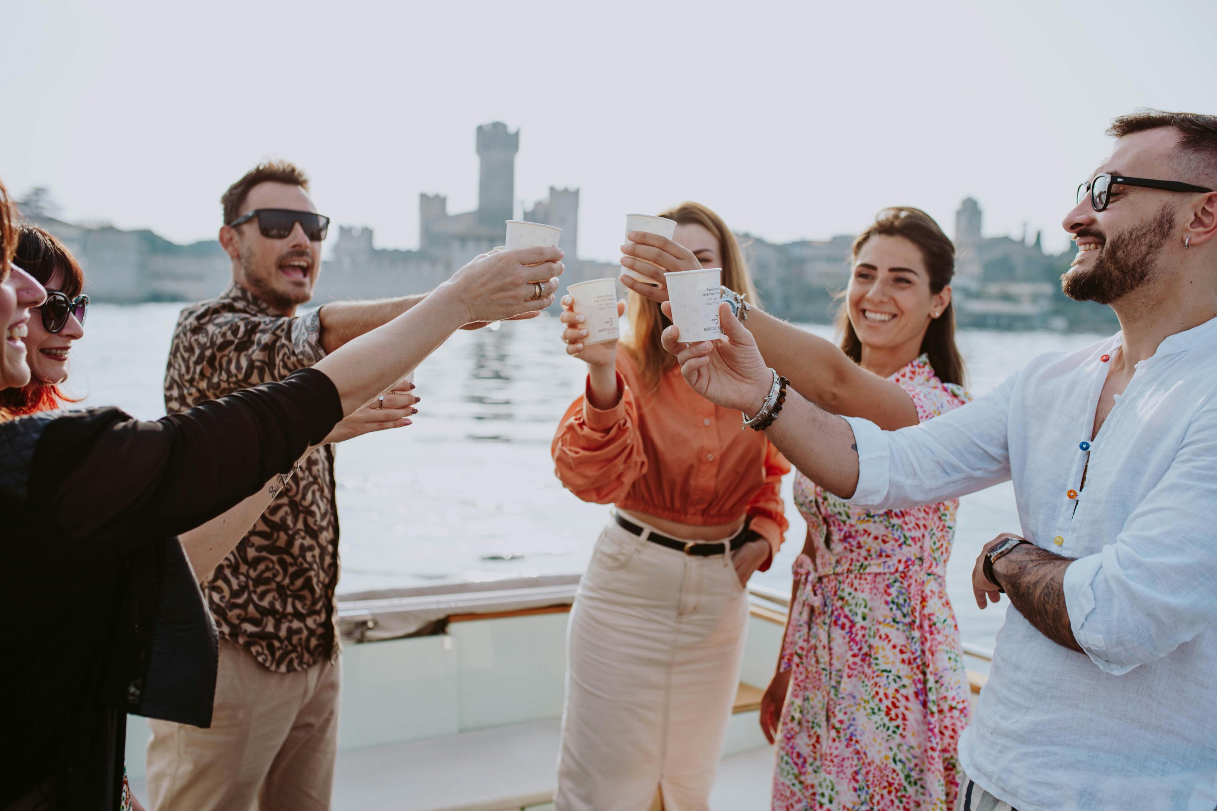 Join a sunset boat tour for a group outing to witness an amazing sunset over Lake Garda. This scheduled adventure is perfect for enjoying the lake's scenic atmosphere with loved ones or new friends. Enjoy the beautiful views, the gentle waves, and the company of fellow travelers while sipping on a glass of Prosecco.