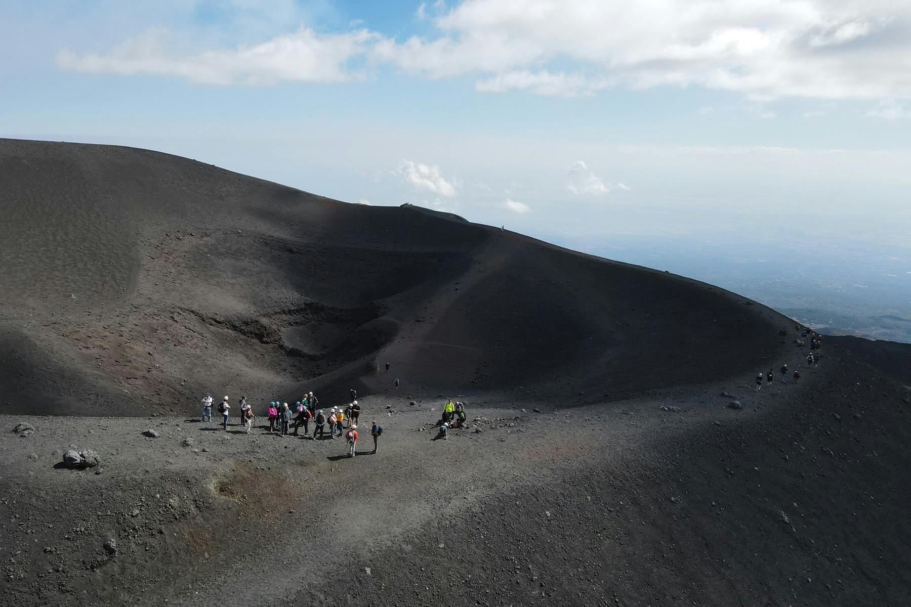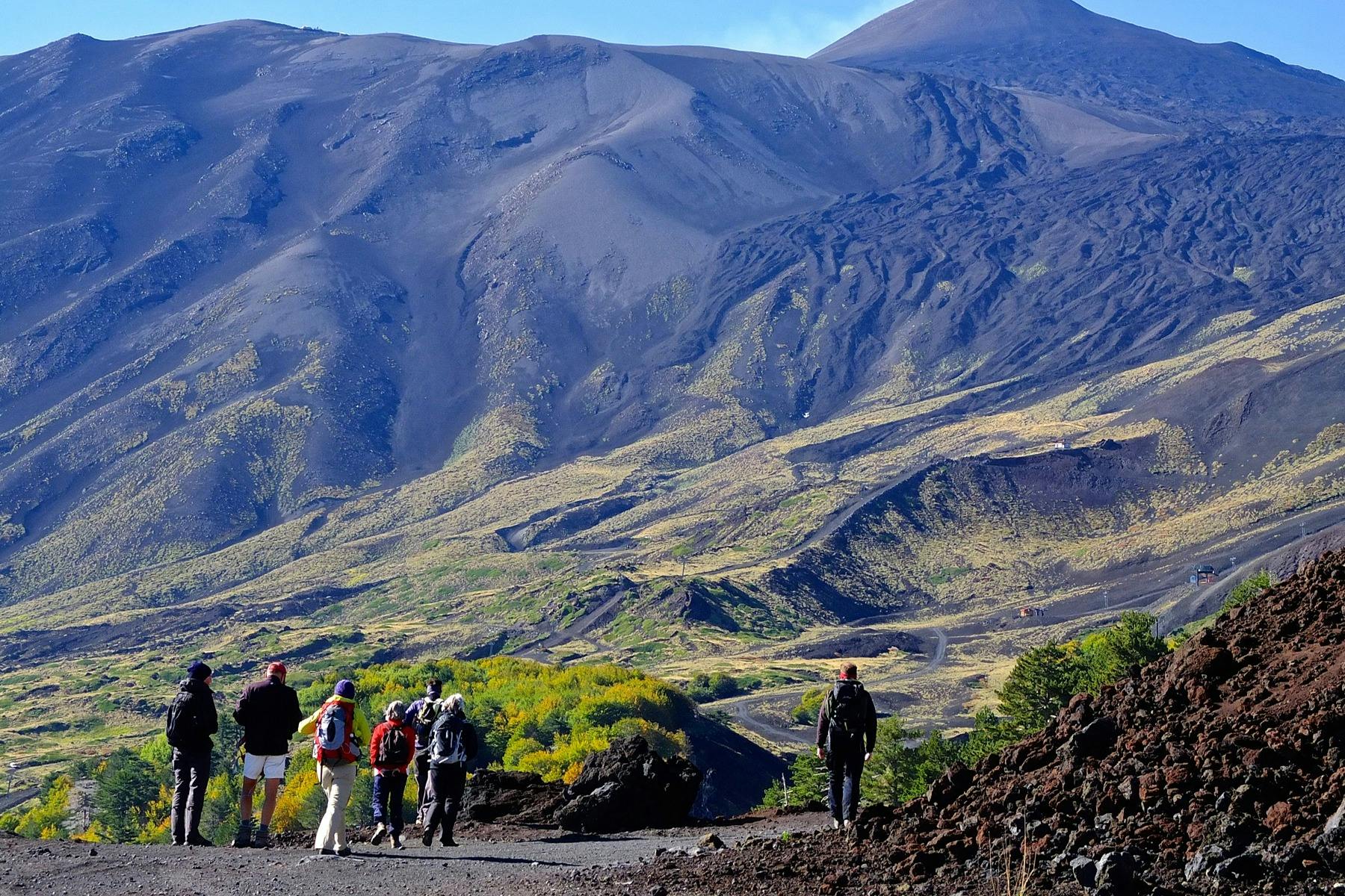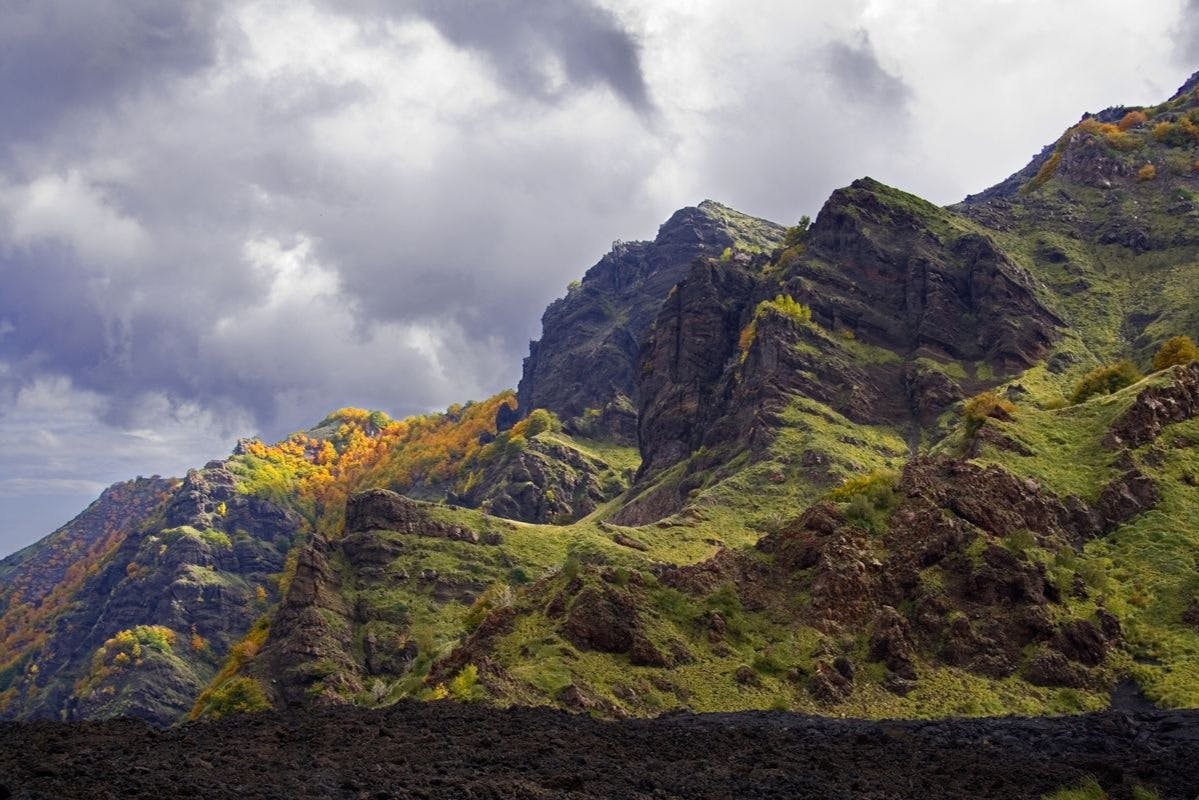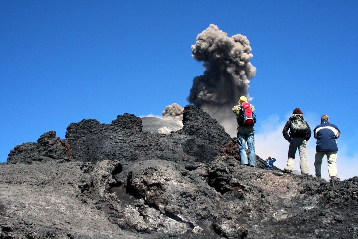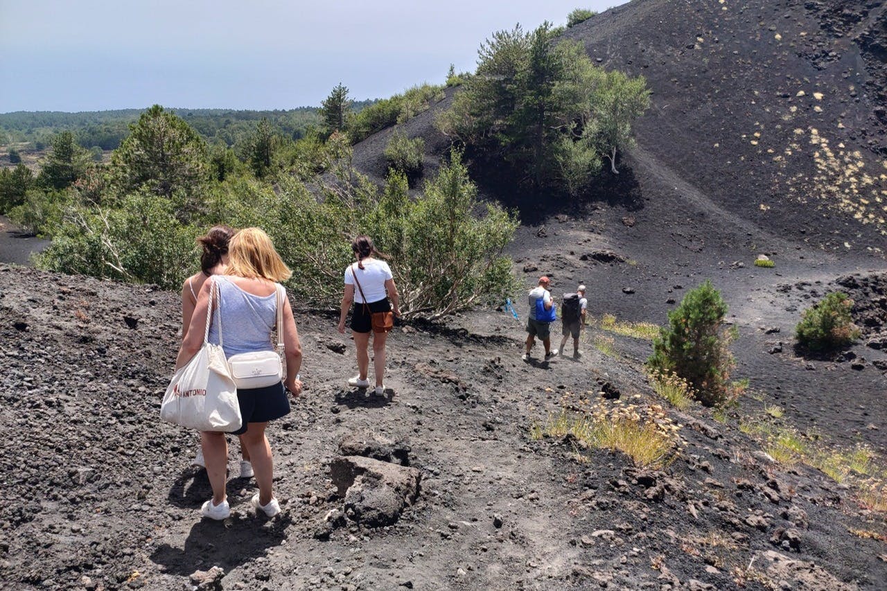Trek on one of Europe's most active volcanoes, Mount Etna with this thrilling half-day tour from Taormina! * Witness the changing landscape as you ascend and treat your eyes to an unforgettable experience in nature. Sicily's monster volcano was born to impress! * Upon arrival at the slopes, your guide will lead you to the trekking path on the volcano. Climb towards the top of the 7 lateral craters formed during the 1865 eruption, and check out the cool "buttons shapes" effect. * Find yourself surrounded by pyroclastic materials like scoria, lapilli, and volcanic "bombs." And admire rare tree species like the *betula aetnensis*, found only on the north side of Mount Etna. * On a clear day, you'll have breathtaking panoramas from Calabria to Taormina, and if you're lucky, you will even glimpse Stromboli island!