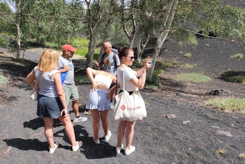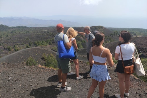 This guided full-day hike on Mount Etna will put you on the slopes of Sicily's mighty natural monument! * Departing from Taormina, experience the changing landscape as you ascend this active volcano. Meet your guide at the slopes and begin climbing the lateral craters, which were formed during the 1865 eruption. * You'll get a close-up look at what constitutes a volcano, and soak up the unique atmosphere, surrounded by pyroclastic materials and rare tree species. * On a clear day, enjoy breathtaking panoramas from Calabria to Taormina, and maybe catch a glimpse of Stromboli Island. * After the hike, tuck into a refreshing lunch featuring Sicilian specialties, with 3 courses and drinks included. Take an hour of free time before returning to Taormina.