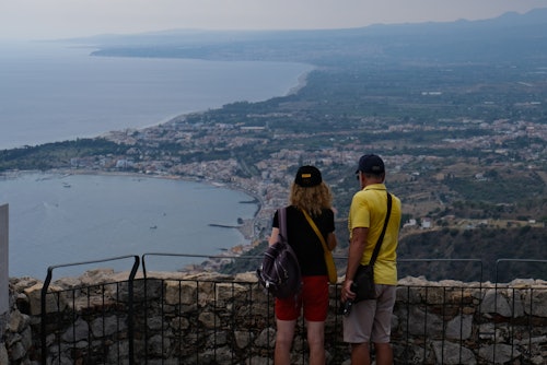 Visit Il Castello, an Arab-Norman fortress from the 11th century, located on the rock of Monte at 397 meters high. Observe a wide variety of landscapes from the tower, ranging from the Ionian side to the Strait of Messina, including the towns of Taormina and Castelmola and the volcano Etna down to its foothills and the long coast with its villages. Reach the Taormina Castle via a staircase carved into the rock. Get tickets online or at the ticket office. At the entrance, show your ticket to receive an audio guide in five languages, covering 21 historical points within the castle. You will also get a bilingual 3D map indicating all points of interest. At the end of the visit, receive a personalized parchment.