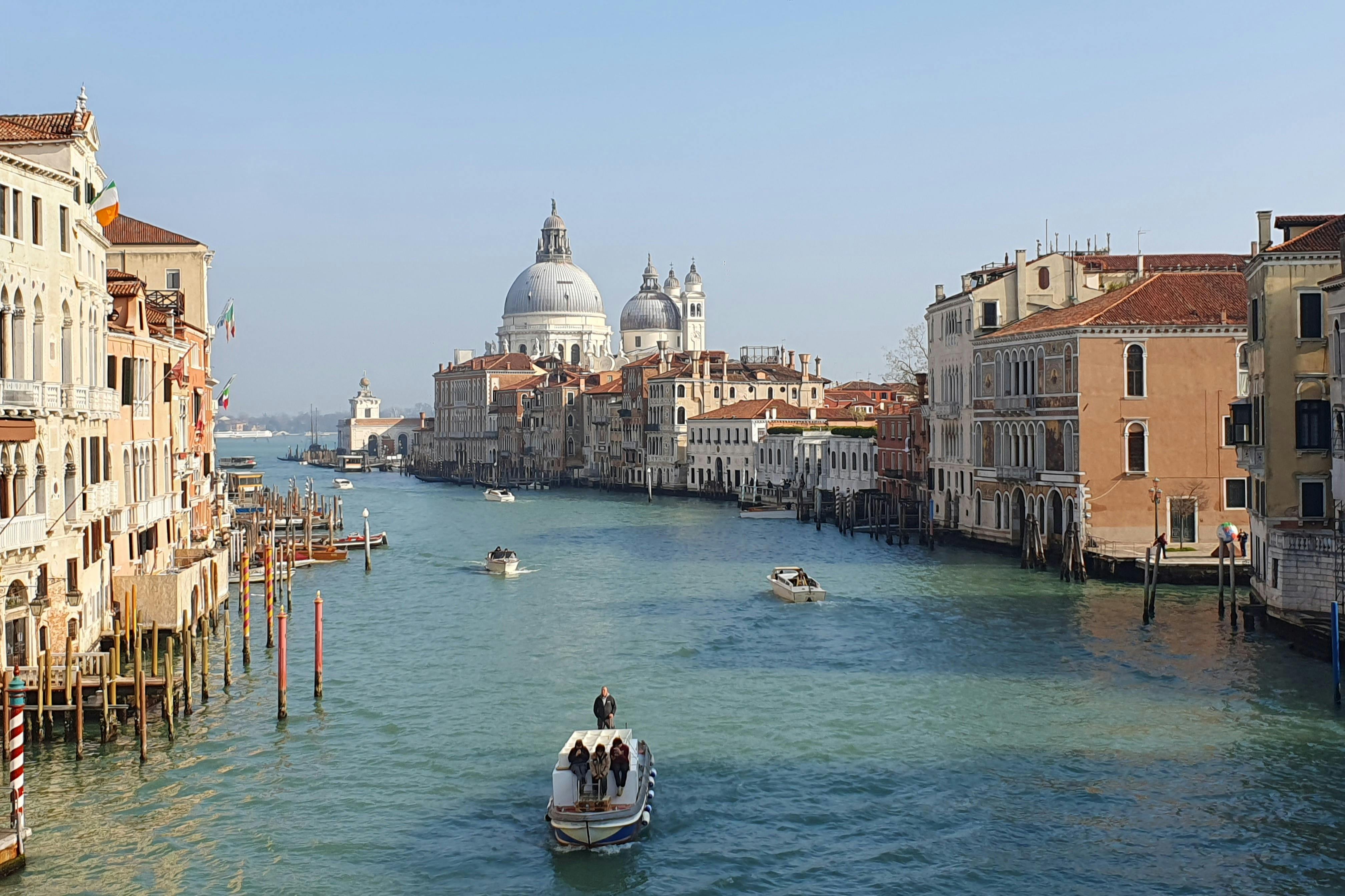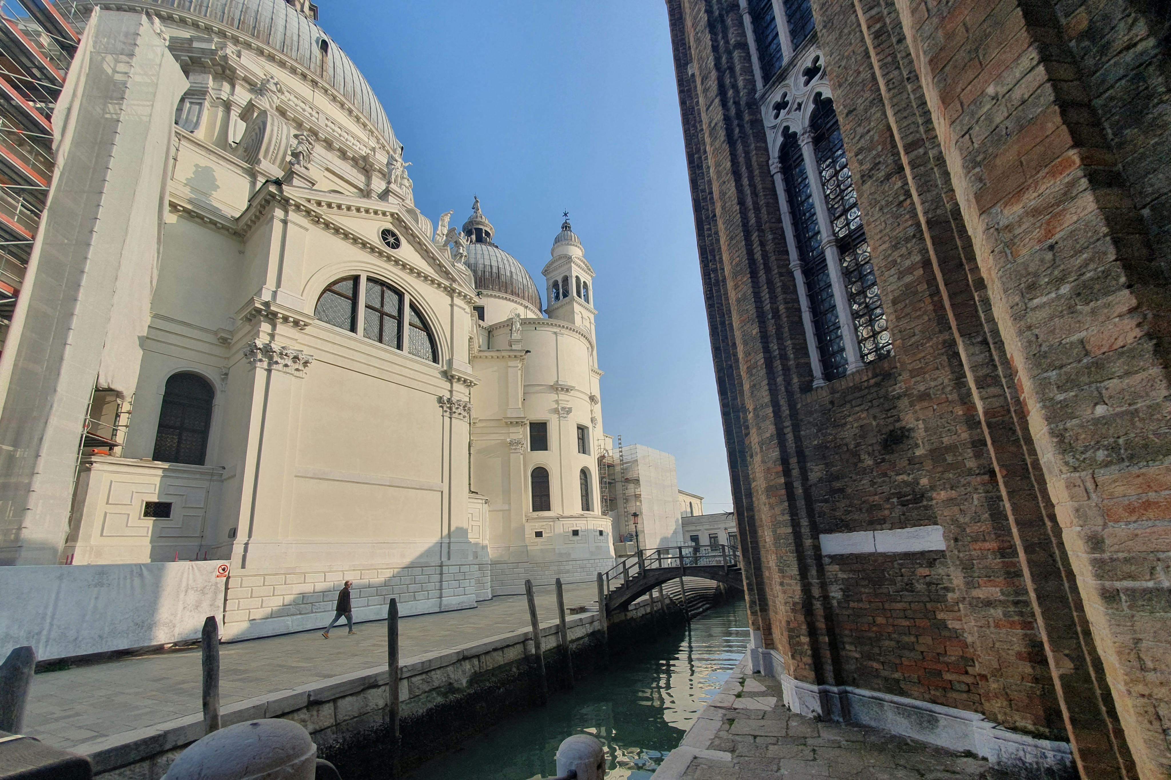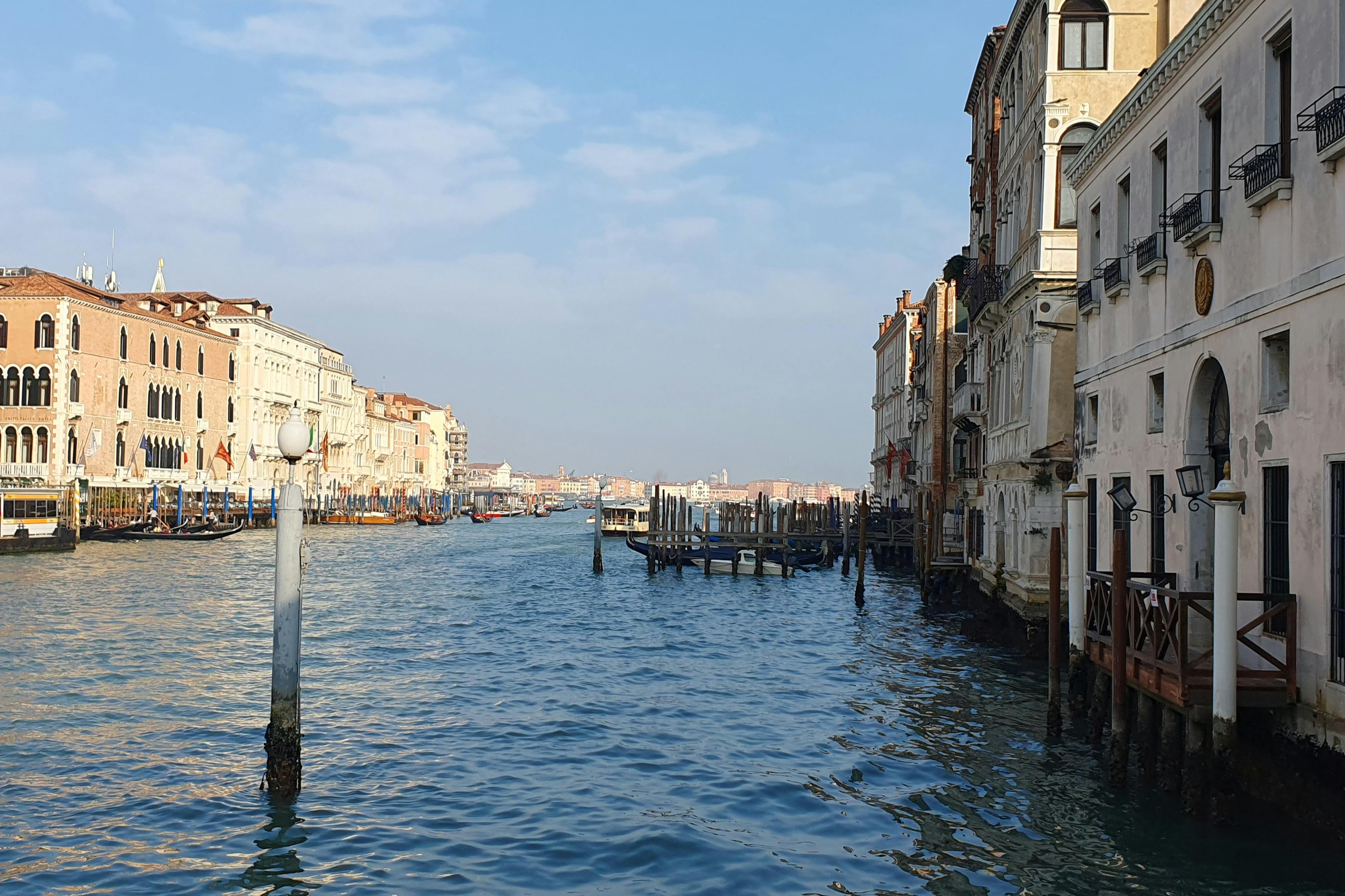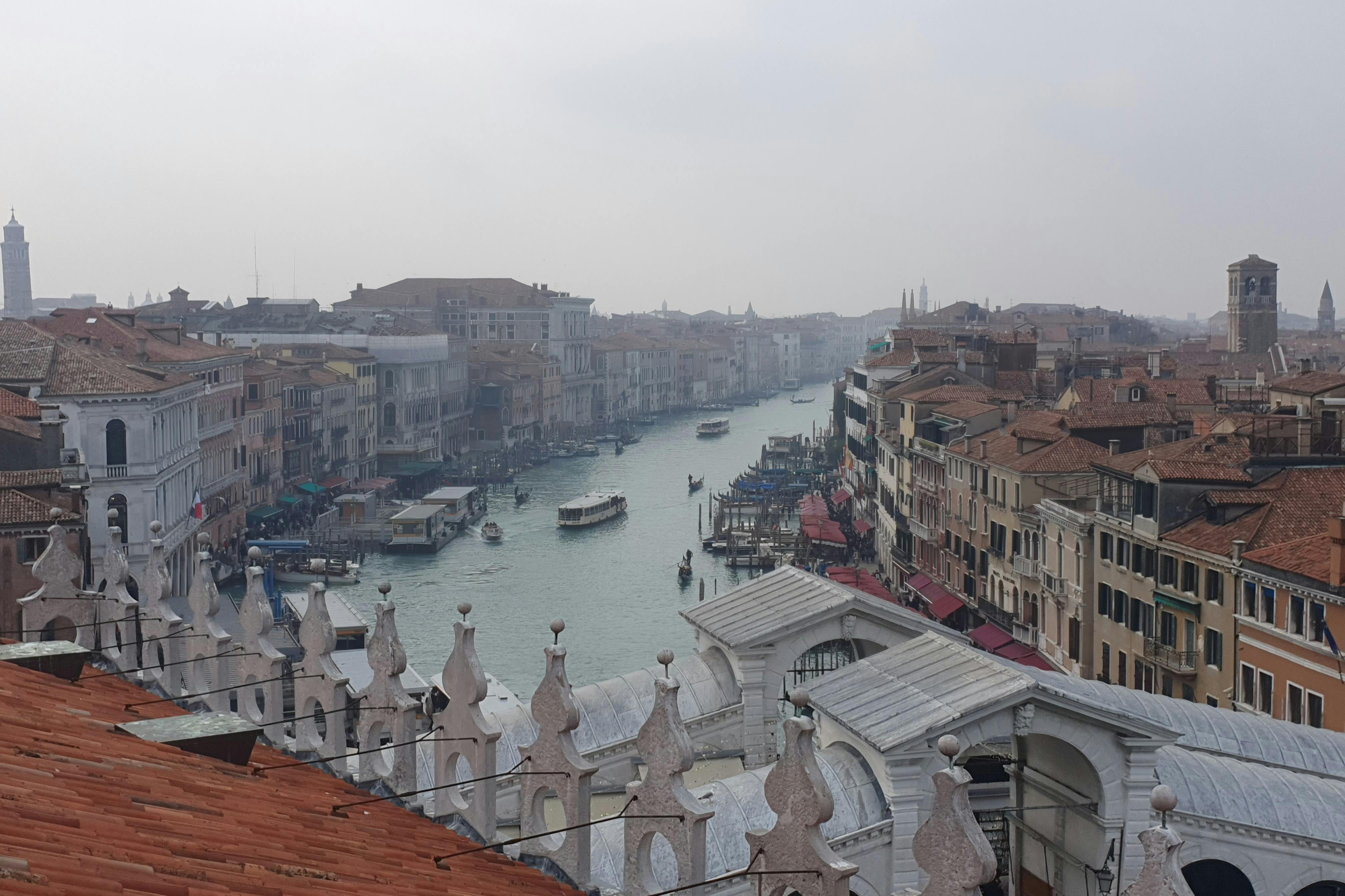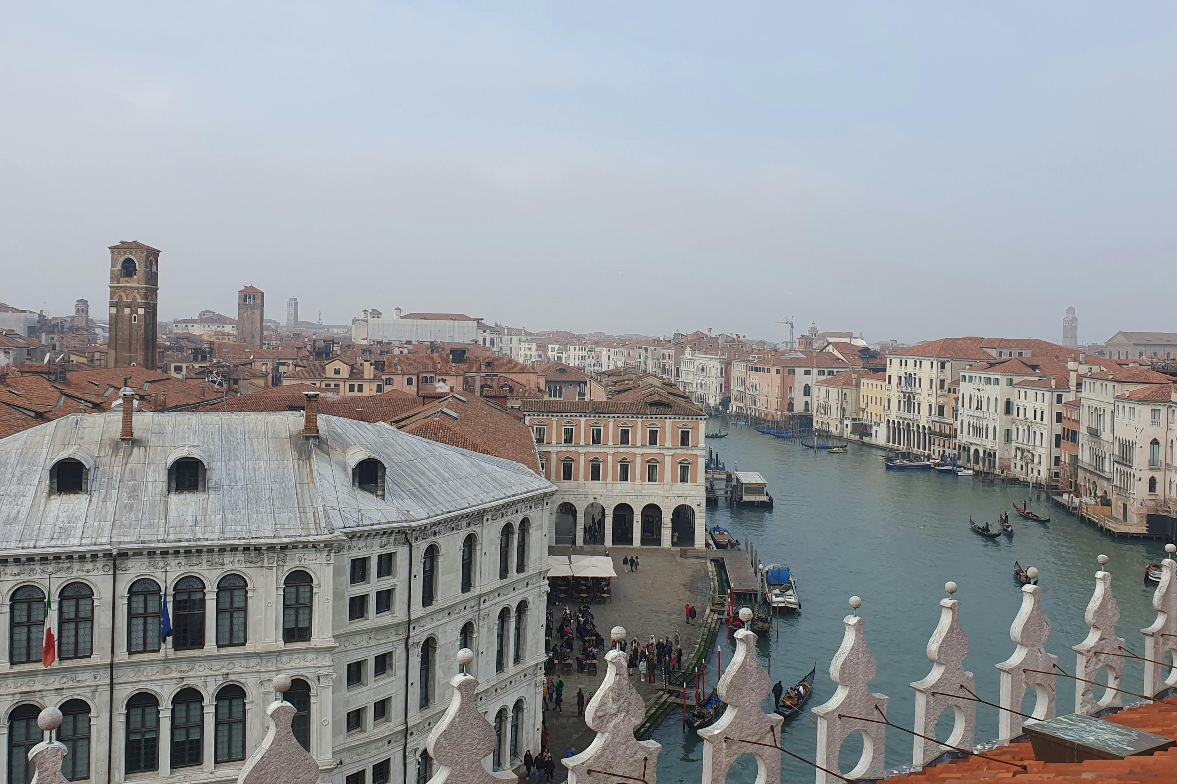 Join a three-hour comprehensive tour and discover the beauty of Venice's hidden gems, including the Fondaco dei Tedeschi terraces. There are amazing views to be seen from here, of the city and the impressive Bovolo Staircase. * Marvel at the artworks in the Peggy Guggenheim Museum and take in the stunning views from the Chiesa della Salute. Witness the iconic Rialto Bridge from the lower part, where you'll really get to appreciate the magnificent structure in its full grandeur as it towers above the shimmering waters of the canal. * Your English-speaking guide will take you on a journey through history, of the places where merchants have been trading for centuries. Hear fascinating tales of the bridge's construction and the vibrant markets that once crowded its banks. * From the stunning vistas of the Grand Canal to the hidden gems of the surrounding alleys, you'll see it all on this tour!