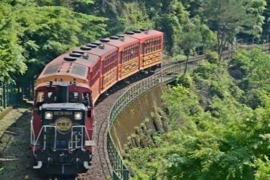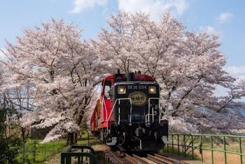 Sagano Romantic Train: one-way ticket is your ticket to the most incredible scenery in Japan. The Sagano Romantic train travels a leisurely, 25-minute route from Saga Torokko Station right through to Kameoka Torokko Station, following the picturesque beauty of the Hozukyo Ravine. * You'll see cherry blossoms in spring, lush greens in summer, Japanese maple in fall, and maybe even a dusting of snow in winter. All four seasons have something new to dazzle you with! It doesn't get more romantic than this.