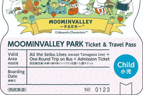 Enjoy a combination of fun and travel with this combo ticket that lets you visit the Moominvalley Park and travel on Seibu lines for the day. * Inside Moominvalley Park you'll start at the Welcome Gate where you can literally walk through book covers, then delve further into Moon tales at the Story Door. There's even a bathing hut made by Moominpapa and a lighthouse taken from the Moominpapa at Sea story. * Your travel pass includes train fare and bus fare – it's the ideal way to travel to the Moominvalley Park. You can take unlimited rides on the Seibu lines (with the exception of the Tamagawa Line) for the day, so you can enjoy not only the Moominvalley Park, but also sightseeing spots located along the Seibu lines. * When taking a limited express train and the reserved seat train, a separate charge will be required.