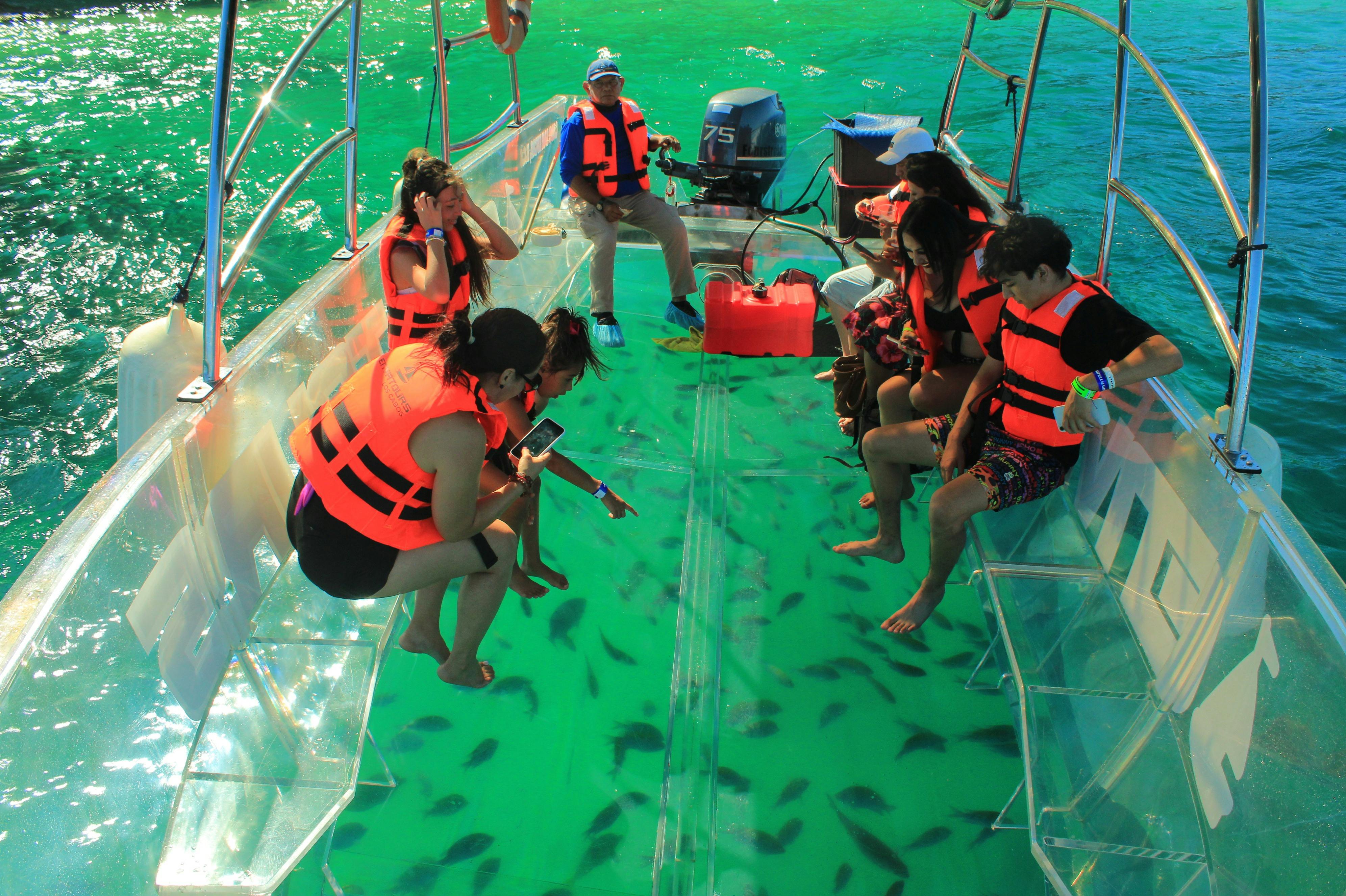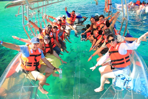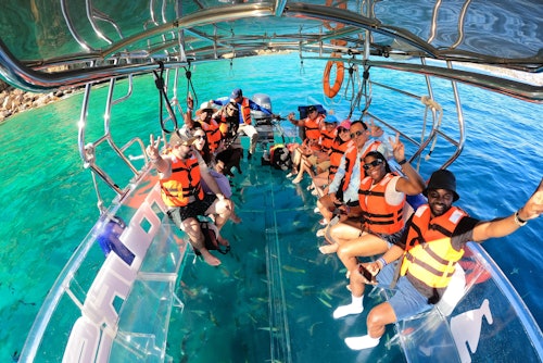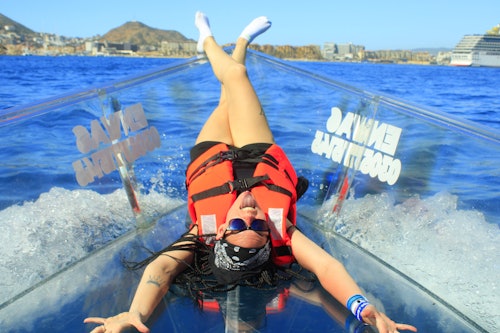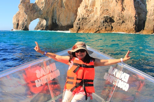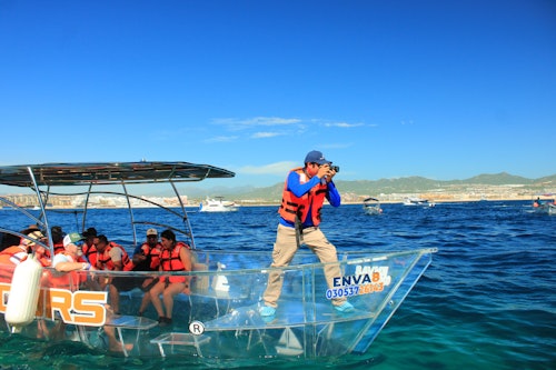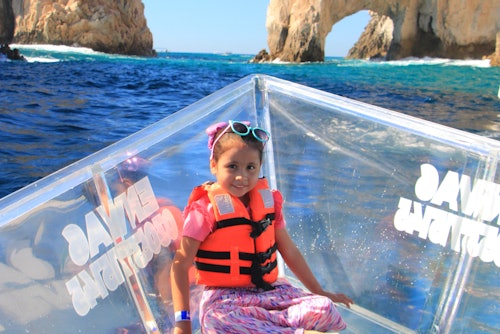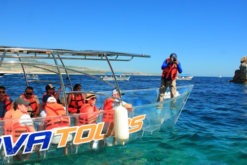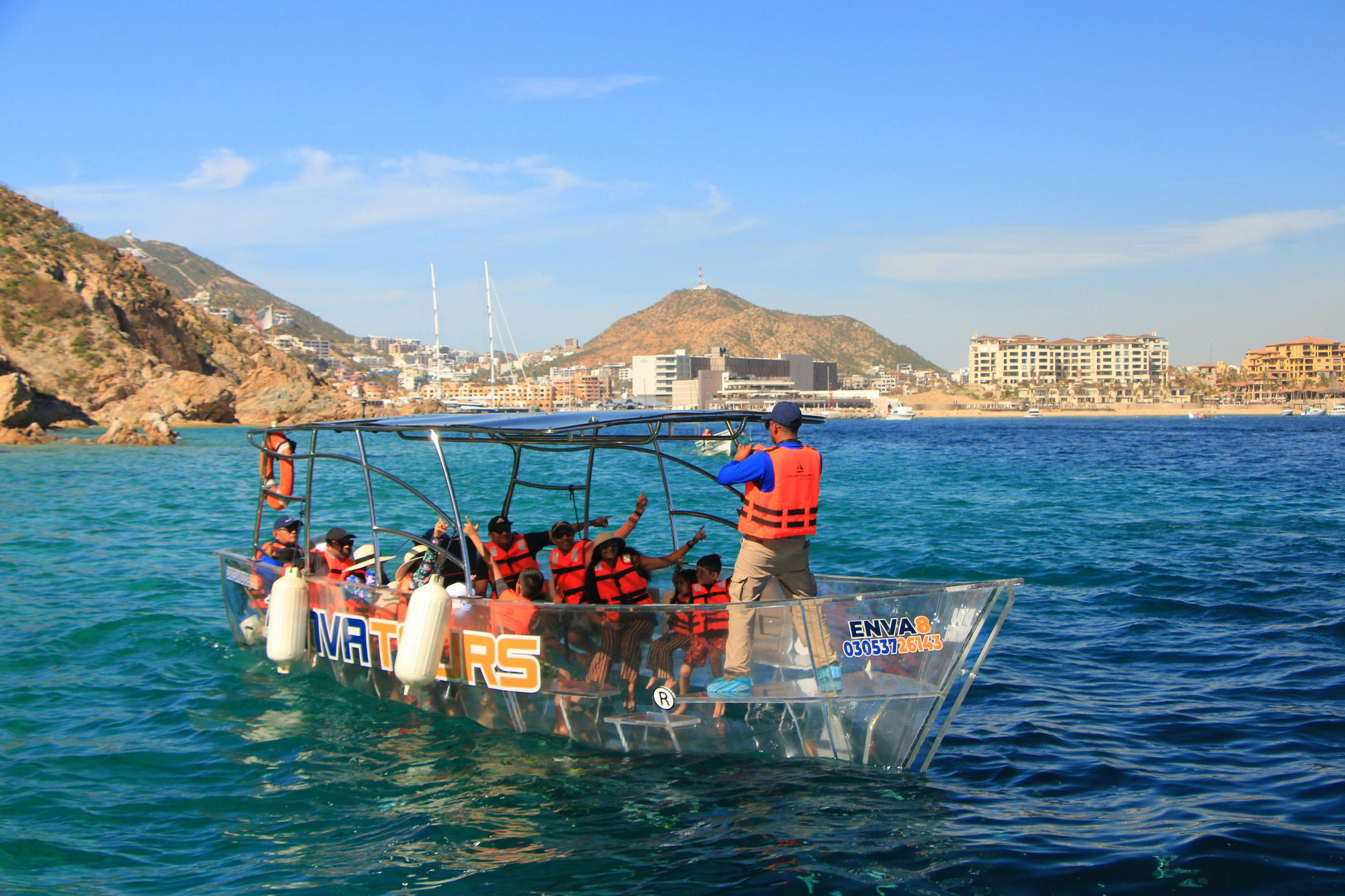 Prepare for the marine adventure of a lifetime! Set sail from Marina Sn Local 15 and 16 A, nestled in the heart of Plaza Bonita, Cabo San Lucas. * The experience begins with stepping onto a glass-bottom boat, a magical vessel that unveils the captivating underwater wildlife of Los Cabos. As the boat glides through the water, watch in awe as fish dance beneath the crystal clear floor. * The journey continues to the exquisite Love and Divorce Beach, renowned for its sun-soaked sand and azure sea. Enclosed by striking rock formations, Love Beach is an iconic spot not to be missed. * The next stop on this nautical voyage is Pelican Rock, where a majestic view known as Neptune's Finger awaits. And of course, marvel at the incredible Arch, a symbol of Los Cabos' natural beauty. * This maritime adventure invites you to discover the best of Los Cabos aboard the finest glass-bottom boat. Don't let this unforgettable experience slip away!