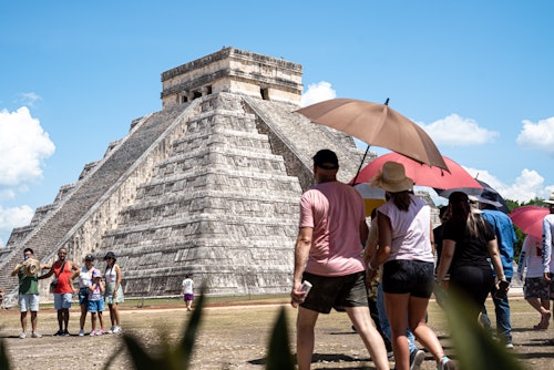 Discover Mexico on a one-day VIP tour, exploring Valladolid, Chichén Itzá, and a sacred cenote. The day starts with a hotel pick-up and a comfortable bus ride to the first stop. * Explore the colonial city of Valladolid on a panoramic tour, stroll through its streets, and visit well-known sites. Enjoy some free time to wander and pick up unique souvenirs. * Then, visit a sacred cenote, once revered by the Mayan civilization, and admire the stunning surroundings. Indulge in an authentic Mexican buffet and a memorable tequila tasting. * Next is a visit to Chichén Itzá, a UNESCO World Heritage Site. Listen as the guide shares the secrets and history of this pre-Columbian city and its iconic pyramids.