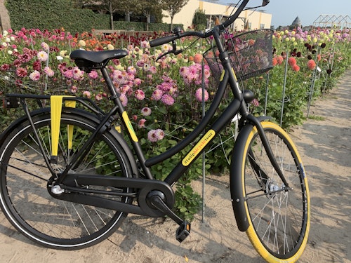 Explore the pastoral beauty of the Netherlands in the most Dutch way possible – on a bike, of course! * During this 2.5-hour trip, you'll cycle alongside the vast Dahlia fields, past the charming Keukenhof Castle, the 14th-century Huys Dever building, and the beautiful center of Lisse. Your experienced local guide will fill you in on the amazing history of Keukenhof Castle and other points of interest as you go. * During the bike tour, there's a break of about 20-25 minutes at De Tulperij, a unique location where you can enjoy stunning views over the endless flower fields. Stop to smell the flowers in the flower greenhouse, have a drink, and buy delicious, fresh Dutch syrup waffles or some souvenirs to take home.