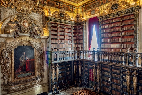 Founded in 1290, the University of Coimbra is the oldest Portuguese-speaking university in the world, and the oldest in the country. * Tour the UNESCO-listed campus, and gain exclusive access to the university's historic Joanina Library, considered to be one of the most beautiful libraries in existence. * Paintings and golden details adorn the walls of the Joanina Library, which was built in memory of King John V in 1728. * Ornate wooden shelves, and two levels of floor-to-ceiling bookcases holding 60,000 texts highlight Baroque architecture and design.