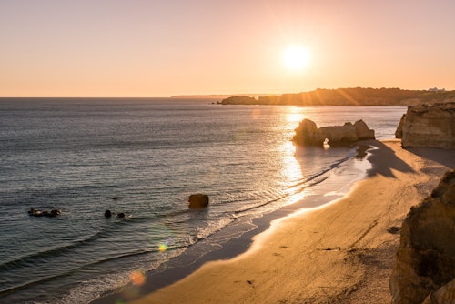 Get ready for an enchanting sunset adventure! Gather at the San Francisco de Portimão dock at the designated time, where a boat will whisk you away for an epic two-hour journey across the Atlantic Ocean. * The destination? The awe-inspiring Benagil Cave, a mesmerizing gem nestled along the southern coast of Portugal. Don't forget those cameras, as the beauty of this stunning landmark is sure to leave lasting memories! * As the evening sky turns into a kaleidoscope of colors, the breathtaking sunset casts its warm glow over the magnificent landscape. Along the way, catch a glimpse of the enchanting Alfanzina Lighthouse, standing proudly near the picturesque Benagil Beach – a true gem of the Algarve coast. * The grand finale? Plunge into the open sea for an invigorating swim as the sun sets on the horizon, creating an unforgettable experience that will be etched in everyone's hearts forever. Don't miss out on this magical sunset cruise – book now and let the enchantment begin!