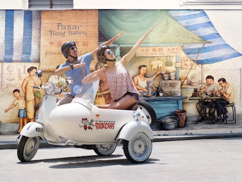 Scoot around the colourful streets of Singapore's famous Kampong Glam district, with one of the most unique and memorable guided tours in the Lion City. Instead of a tour bus, you'll be riding shotgun in a Vespa sidecar – the only way to get around! * You'll rumble past the grand palaces and gorgeous mosques of Singapore's Malay heritage, as well as hip neighborhoods, awesome street art, and lots of Instagram-worthy locales in this vibrant district that blends traditional and modern cultures.