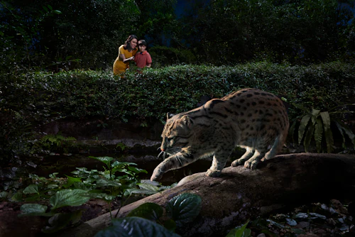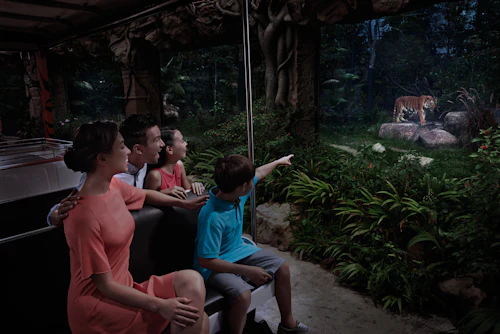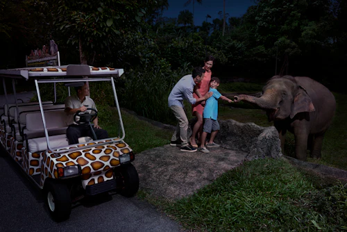 Hop aboard the night safari tram and explore 40 hectares of jungle as dusk begins to descend! There are over 1,000 tropical animals performing their nocturnal habits in habitats built to mimic their natural environment, from the king of the jungle to more timid forest dwellers. * You can also catch a fire-eating Thumbuakar performance, or an animal extravaganza at the Creatures of the Night Show. Feeling hungry after all that adventure? Add an optional dinner at Ulu Ulu Safari Restaurant!