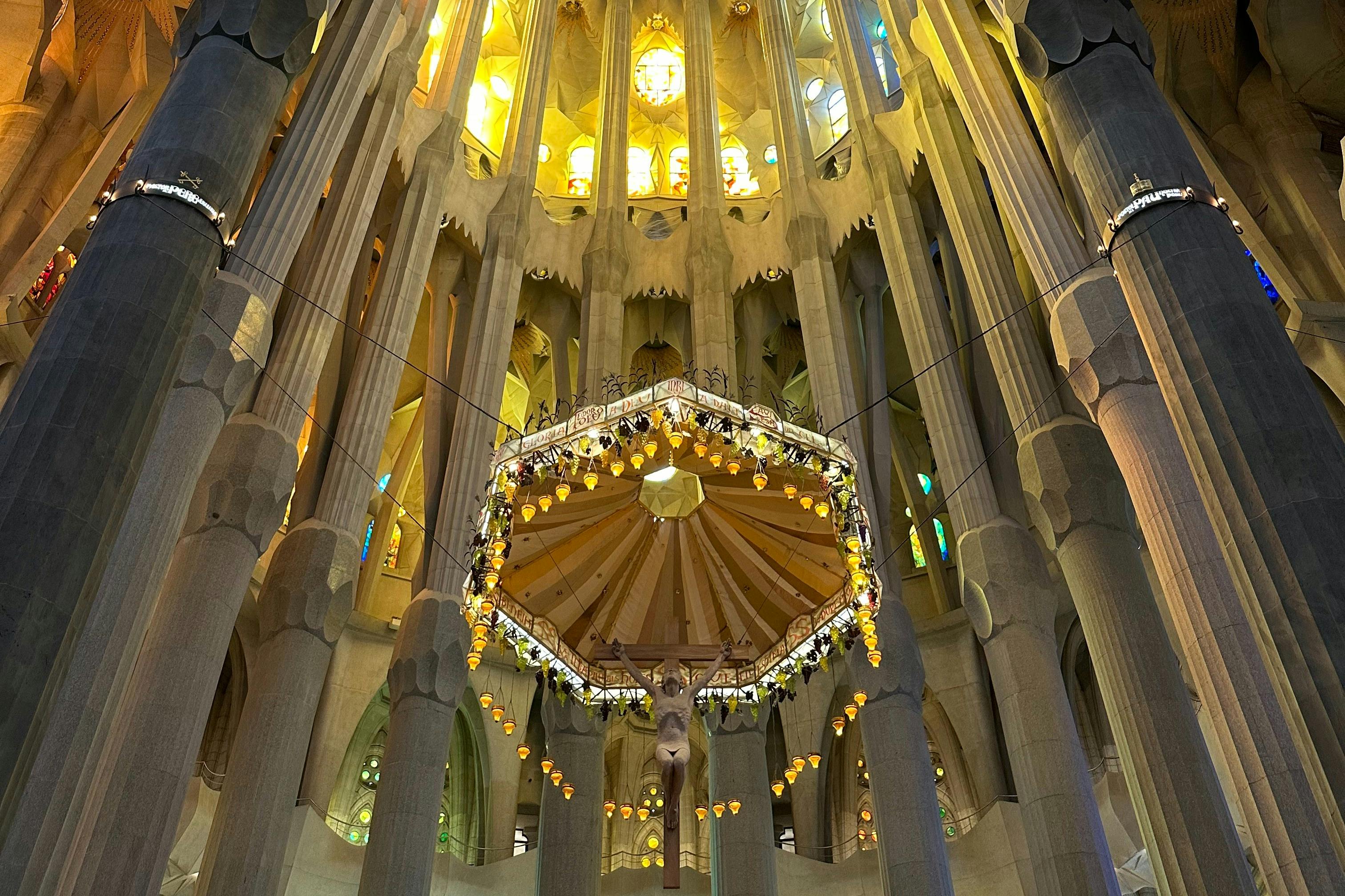 Explore the Sagrada Família with a private local guide. The basilica is an active church with soaring towers, forest-like columns, and stained glass that floods the nave with color. * Learn to read the stories and symbolism on its facades. Step inside to experience the play of light, color, and structure up close. Hear from the guide on how Gaudí conceived it, how the construction evolved, and what’s still in progress, with clear explanations and time for questions.